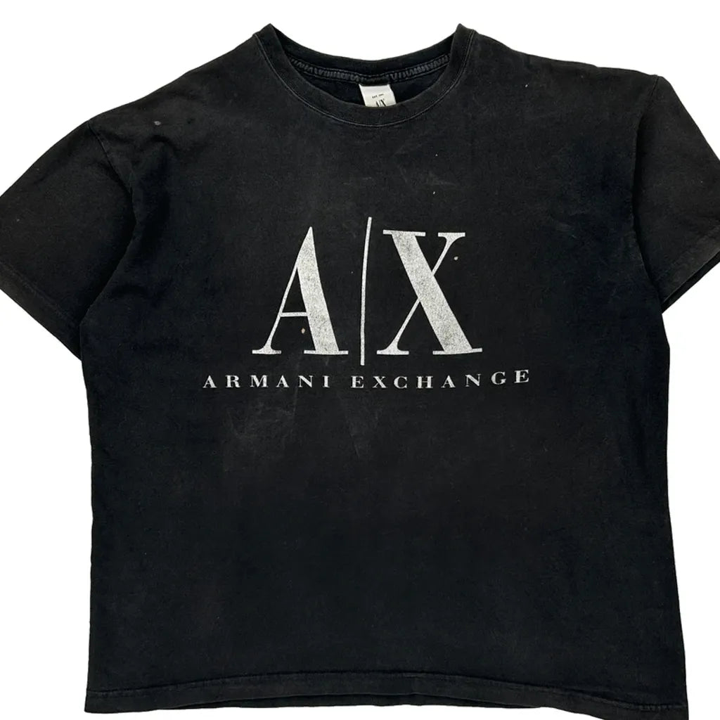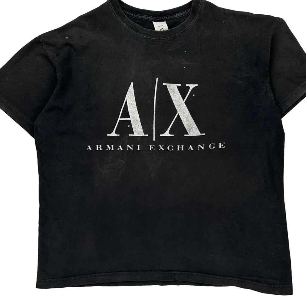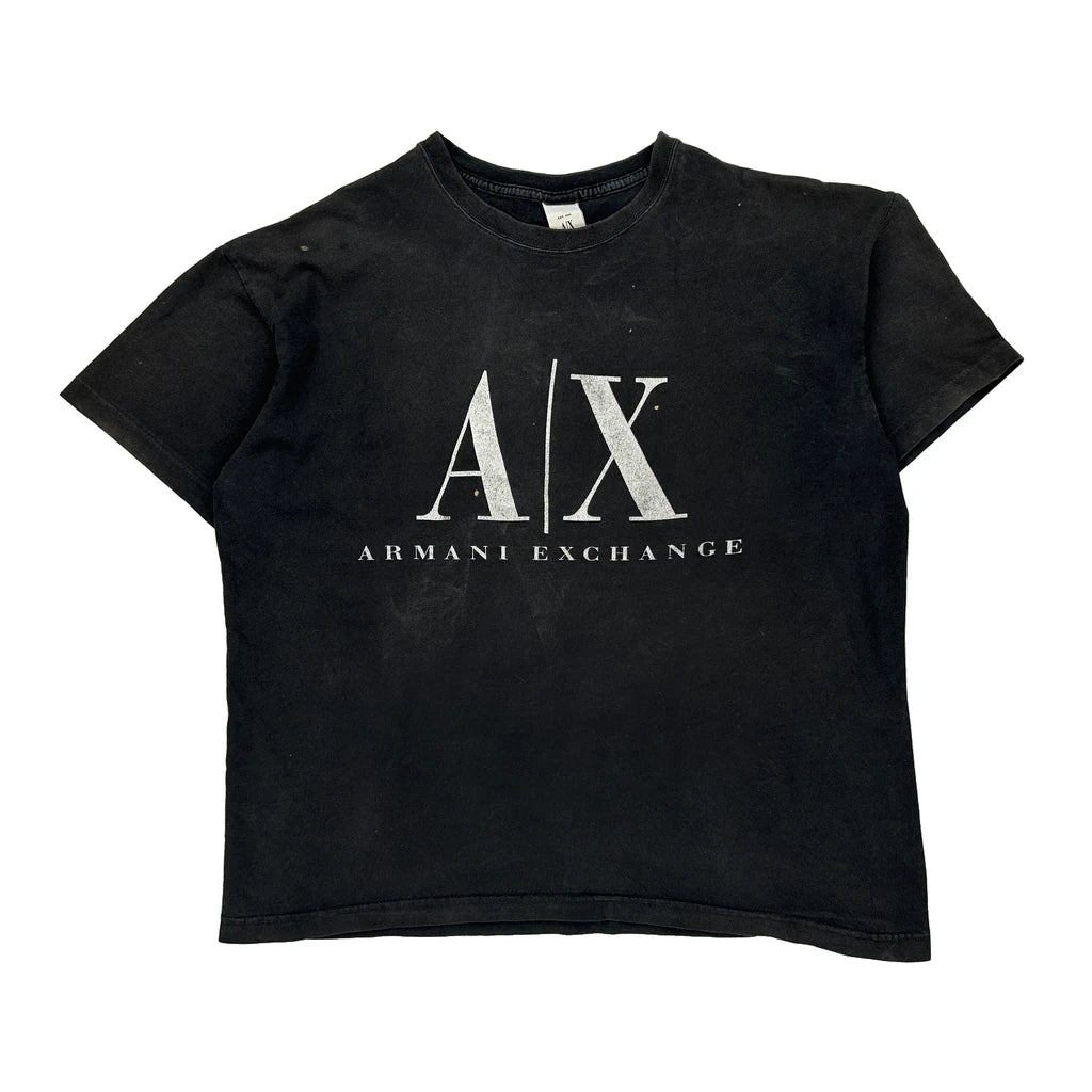 Made In USa Armani Exchange Spellout T-Shirt - Large Black Cotton