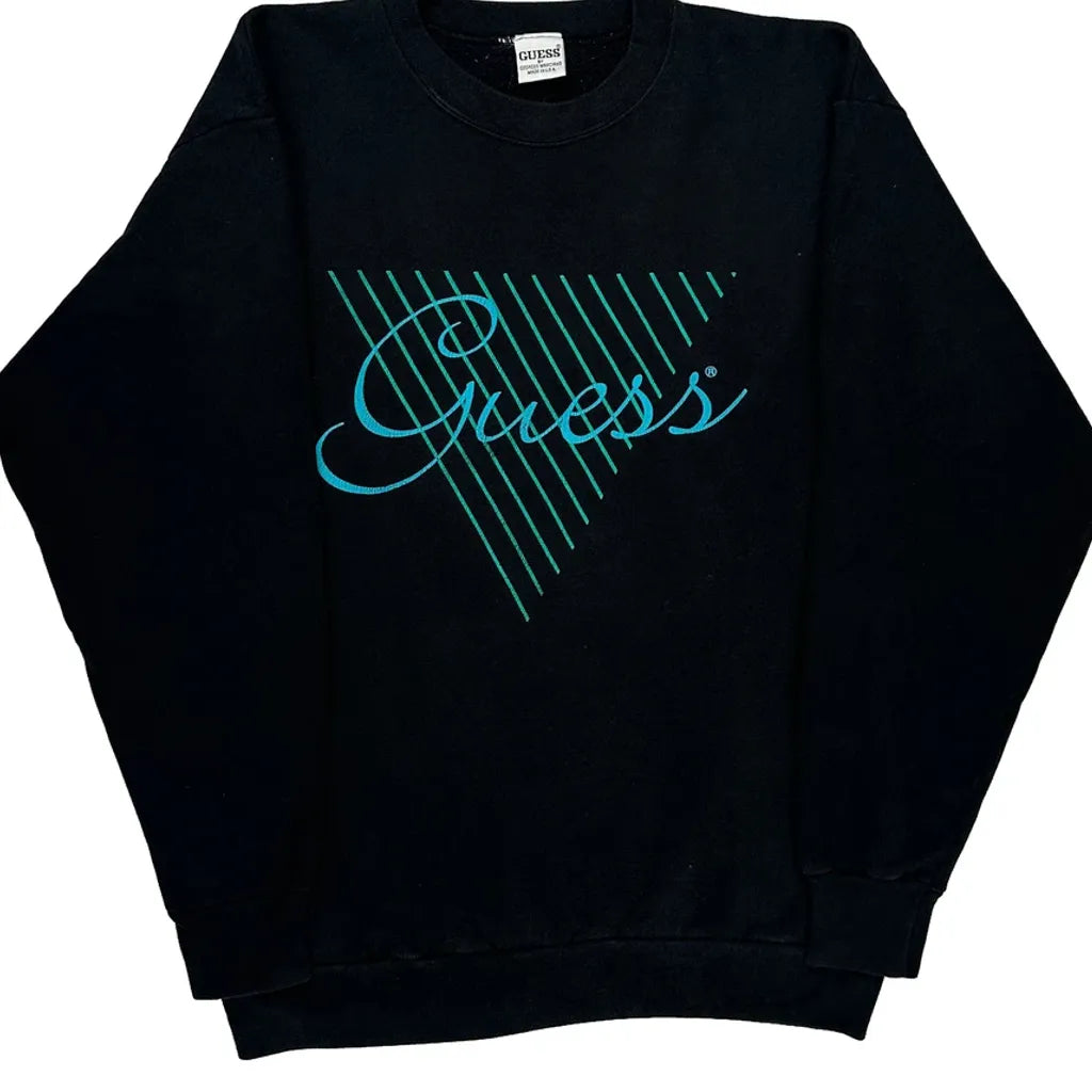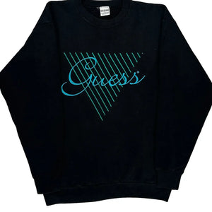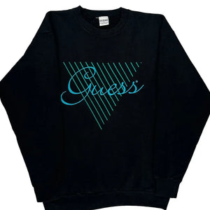 Made In USA Guess Spellout Sweatshirt - Large Black Cotton