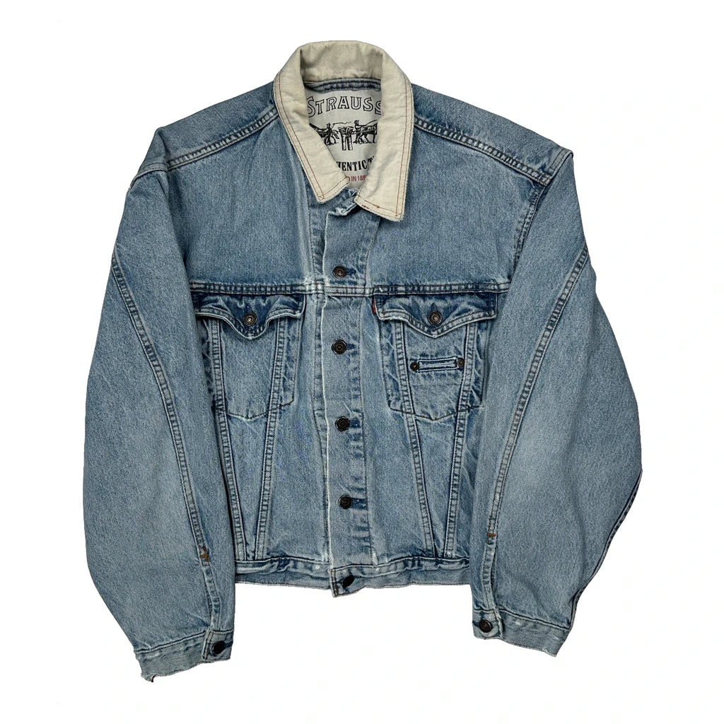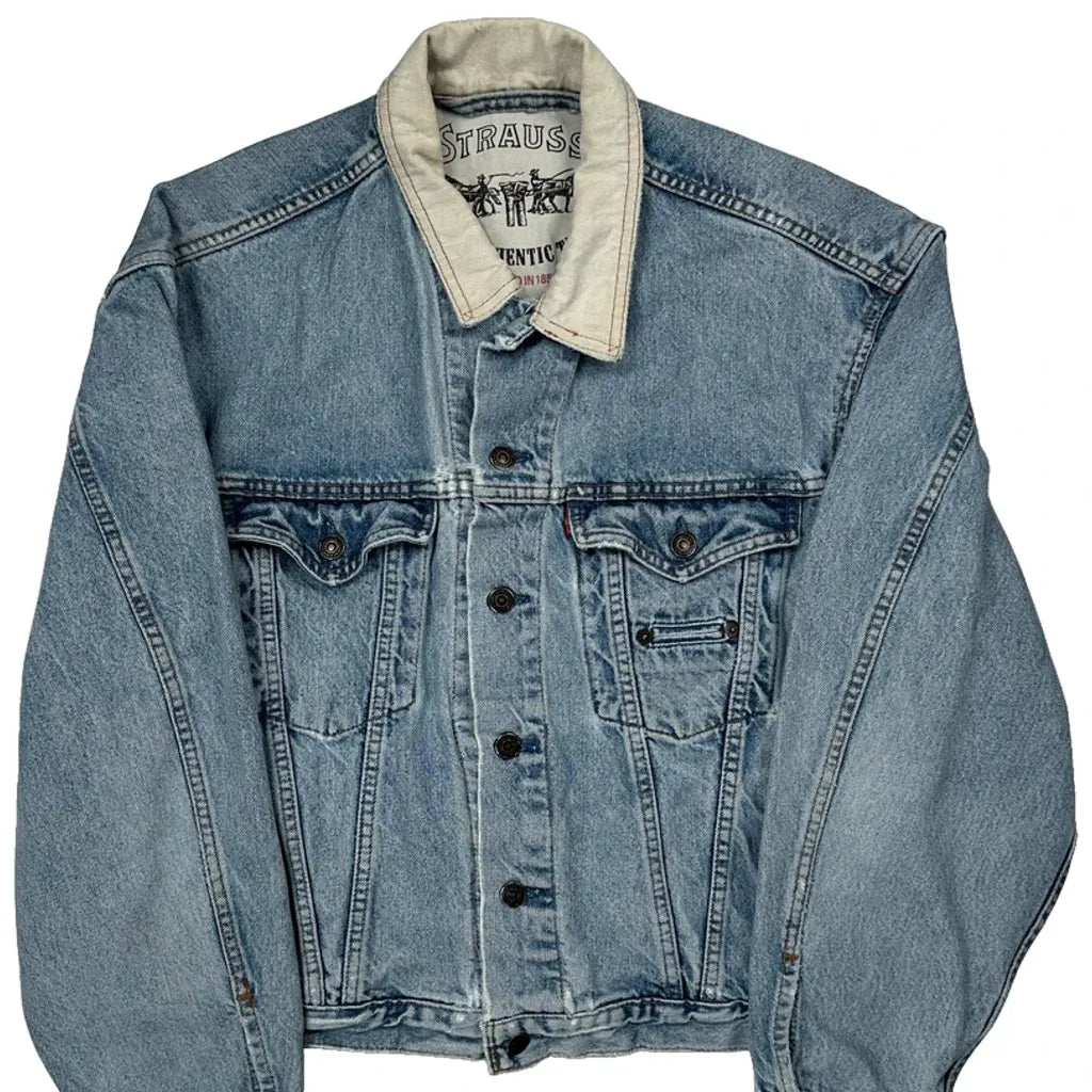 Made In USA Levis Collared Denim Jacket - Medium Light Wash Denim