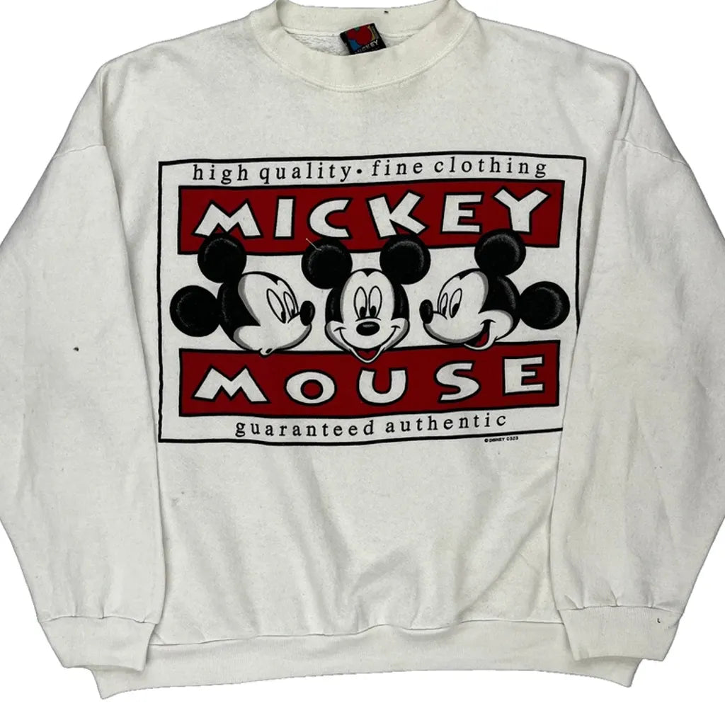 Made In USa Mickey Mouse Mickey Unlimited Cartoon Sweatshirt - XL White Cotton