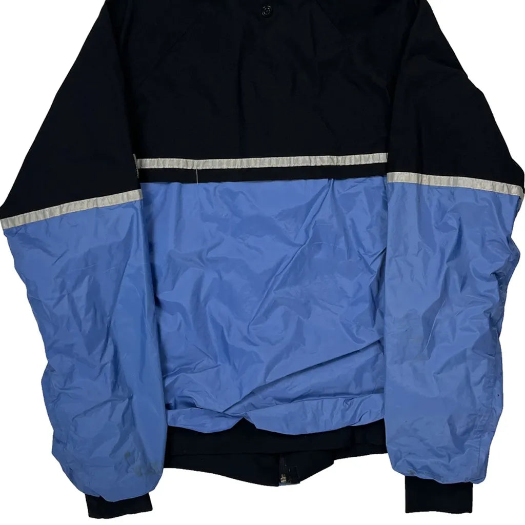 Blue And Black Windbreaker With Reflective Details.