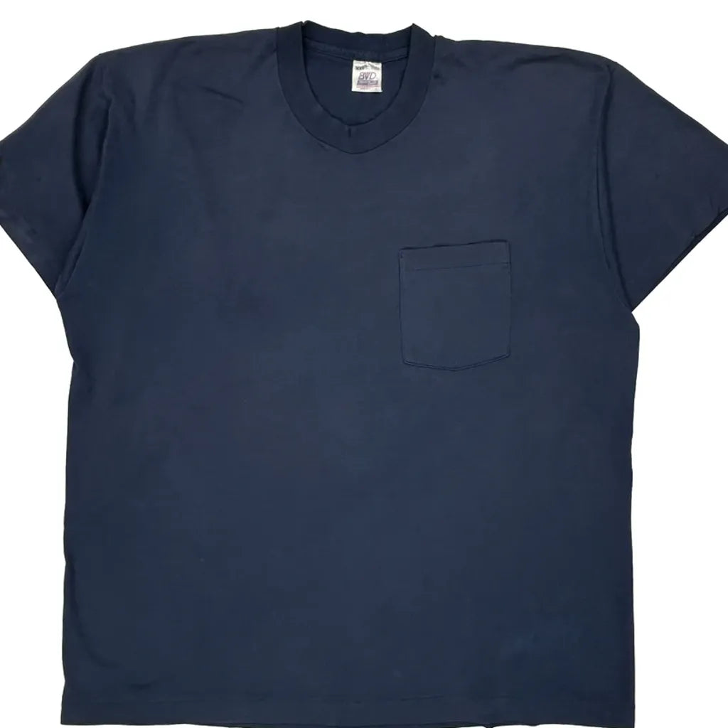 Made In USA Single Stitch Bvd T-Shirt - 2XL Navy Cotton Blend