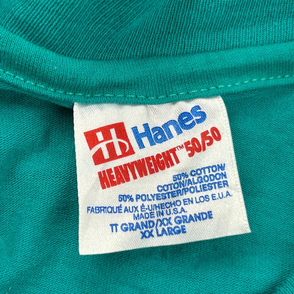 Made In USA Single Stitch Hanes T-Shirt - 2XL Green Cotton Blend