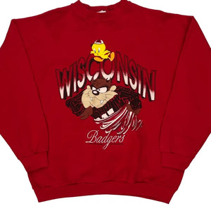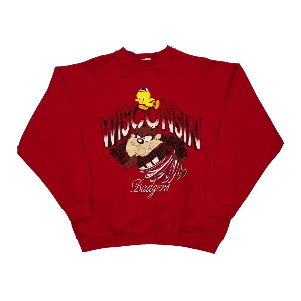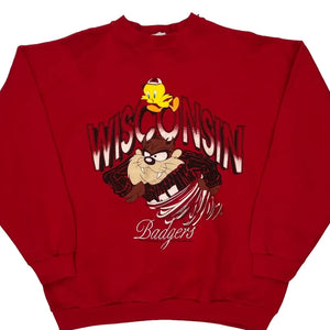 Made In USA Wisconsin Badgers Looney Tunes Graphic Long Sleeve T-Shirt - XL Red Cotton Blend