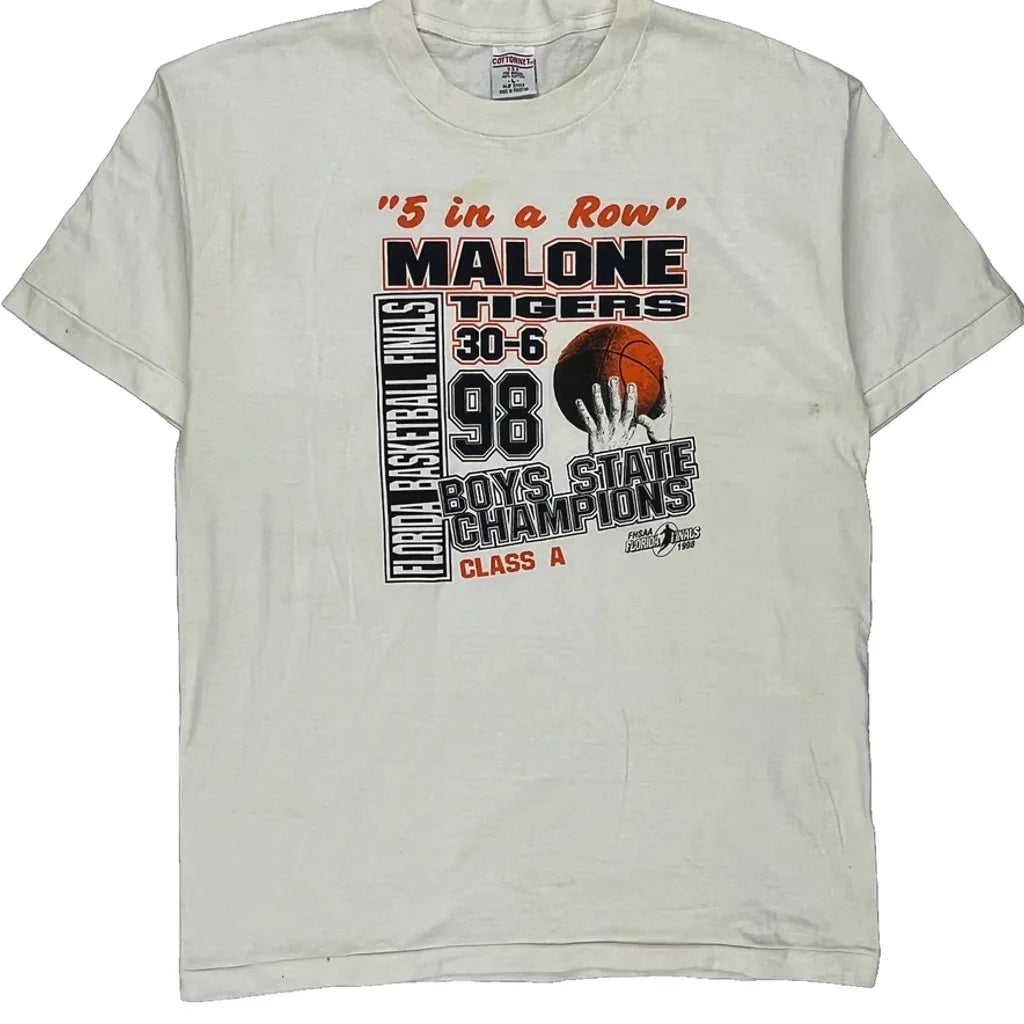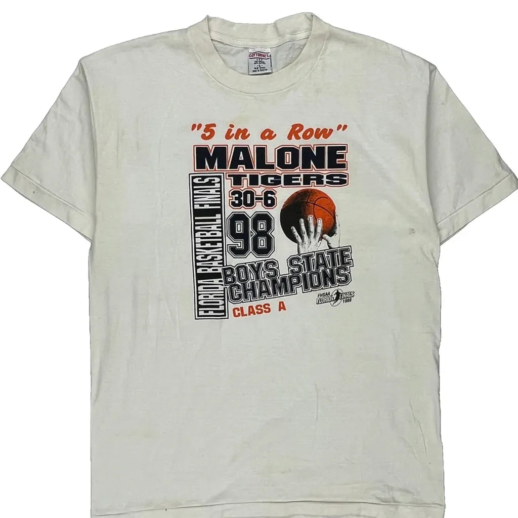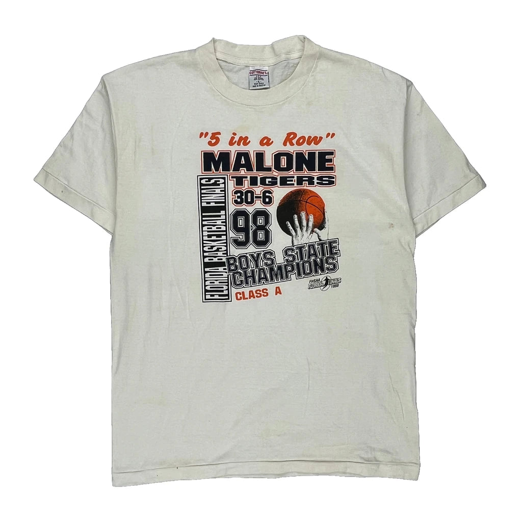 Malone Tigers Cotton Net Single Stitch T-Shirt - Large White Cotton