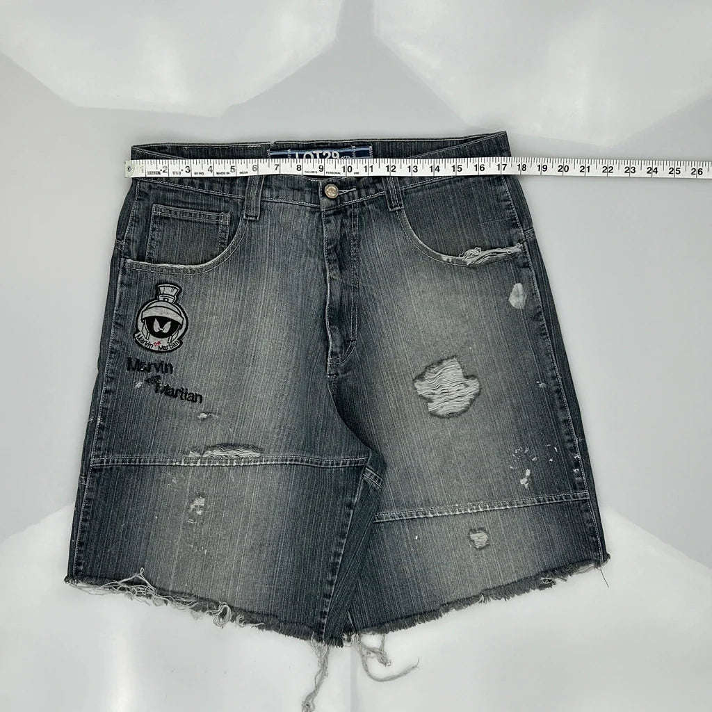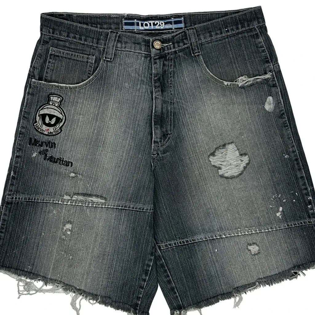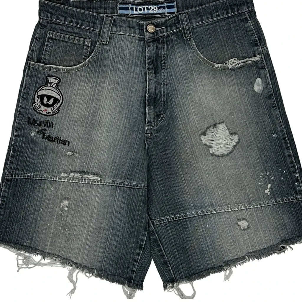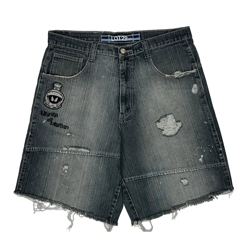 Marvin The Martian Lot 29 Graphic Denim Shorts - 34W 10L Black Denim