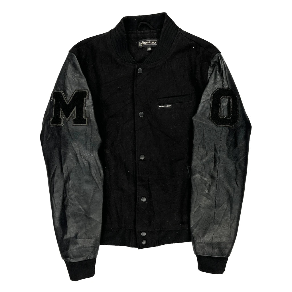 Members Only Varsity Jacket - Large Black Polyester Blend