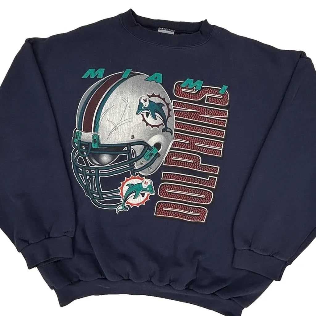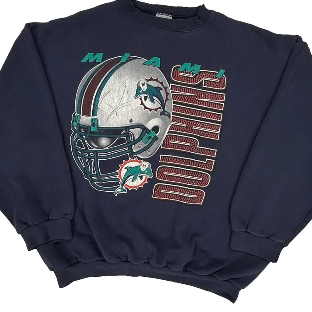 Miami Dolphins Logo Athletics Football Sweatshirt - 2XL Navy Cotton Blend