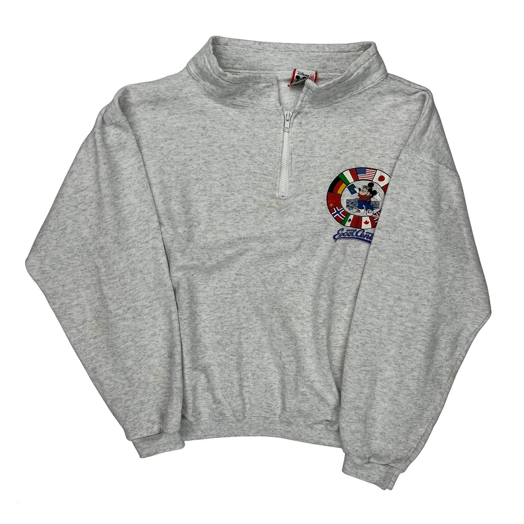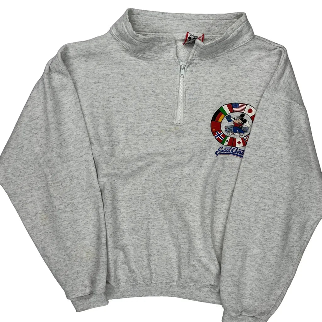Mickey Mouse Disney Graphic 1/4 Zip - XL Grey Cotton Blend