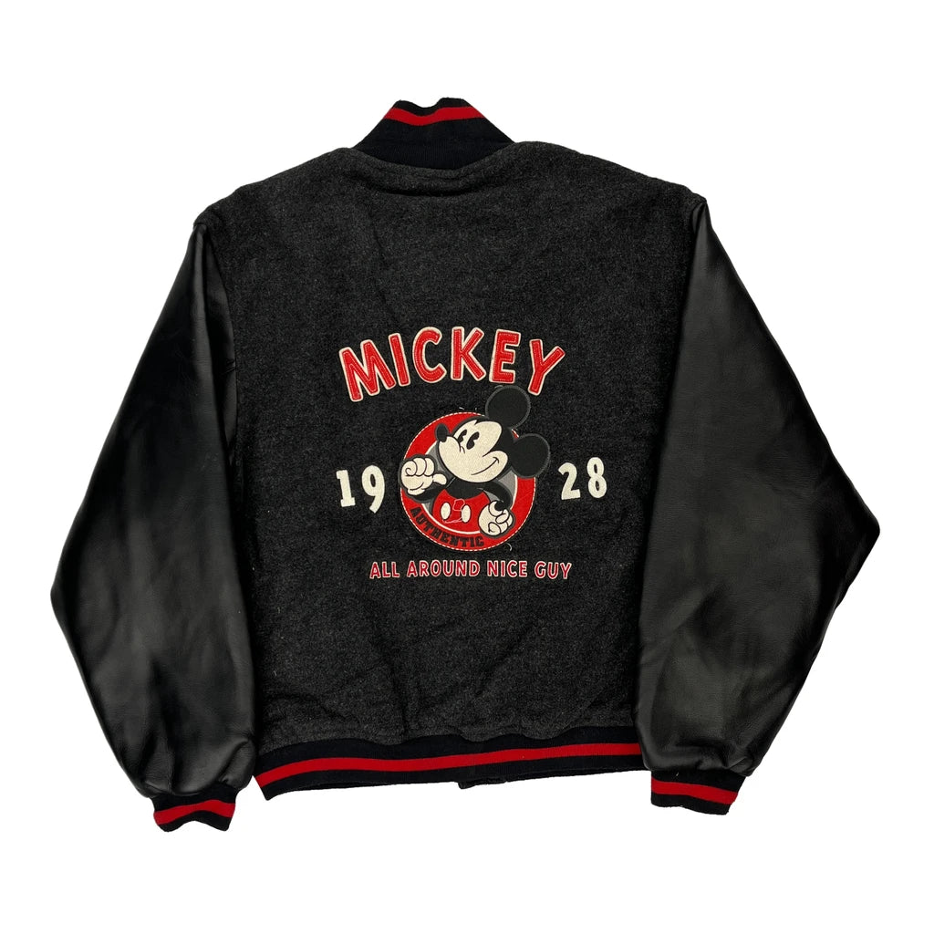 Mickey Mouse Disney Graphic Varsity Jacket - Small Black Polyester Blend