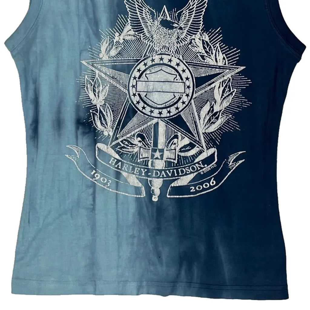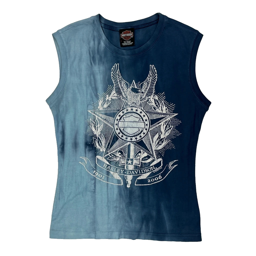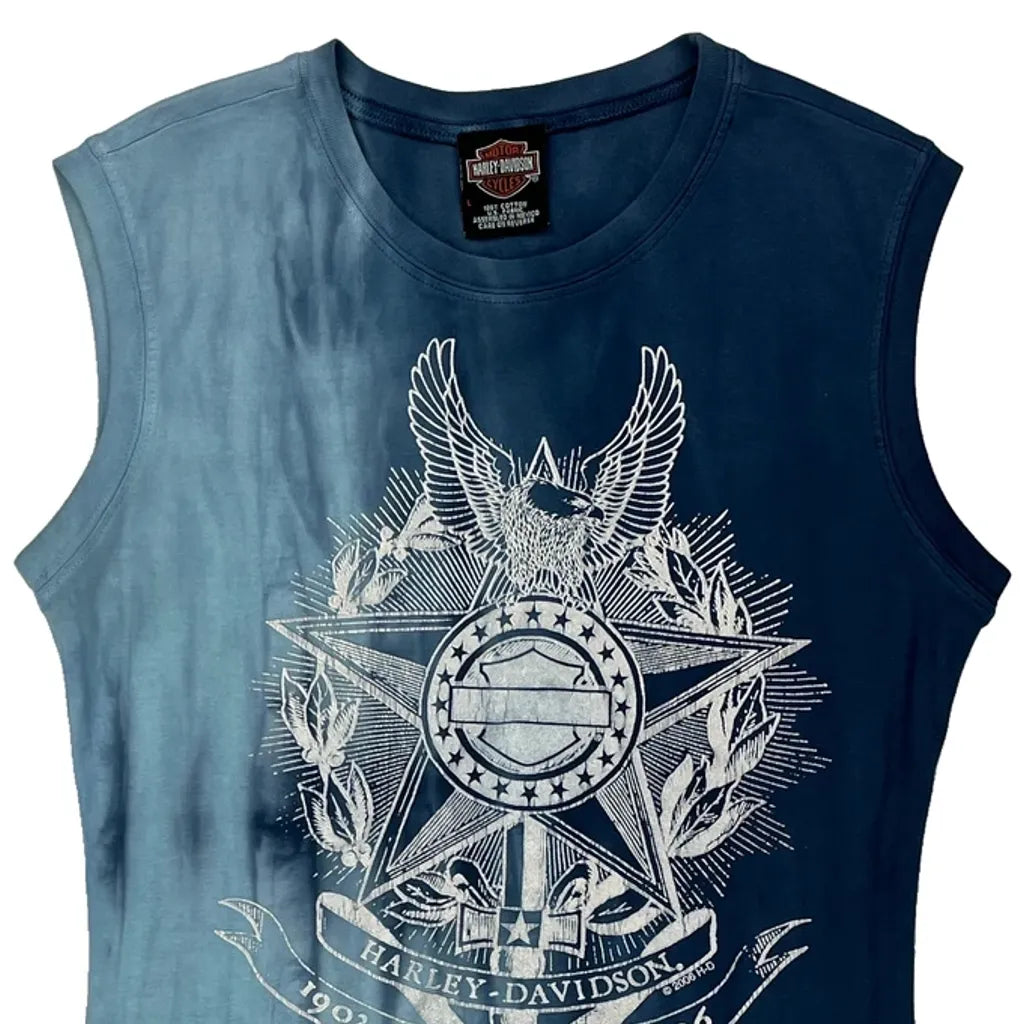 Mike'S Famous Harley Davidson Graphic Vest - Large Blue Cotton