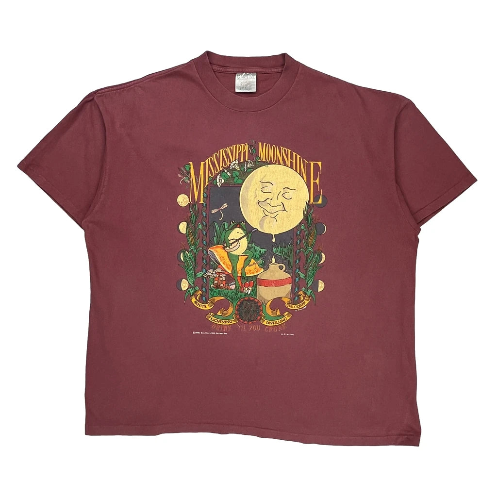 Mississippi Moonshine Oneita Single Stitch T-Shirt - 2XL Burgundy Cotton
