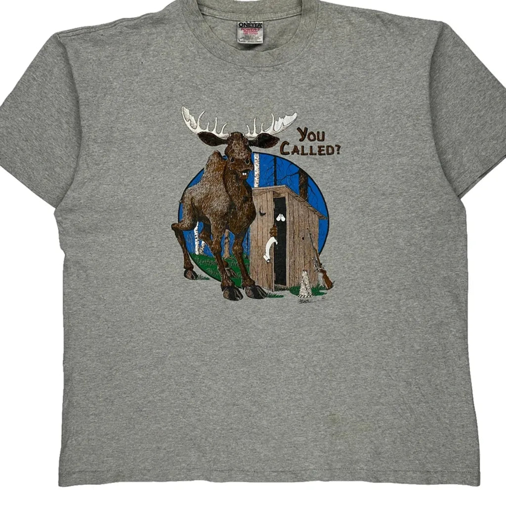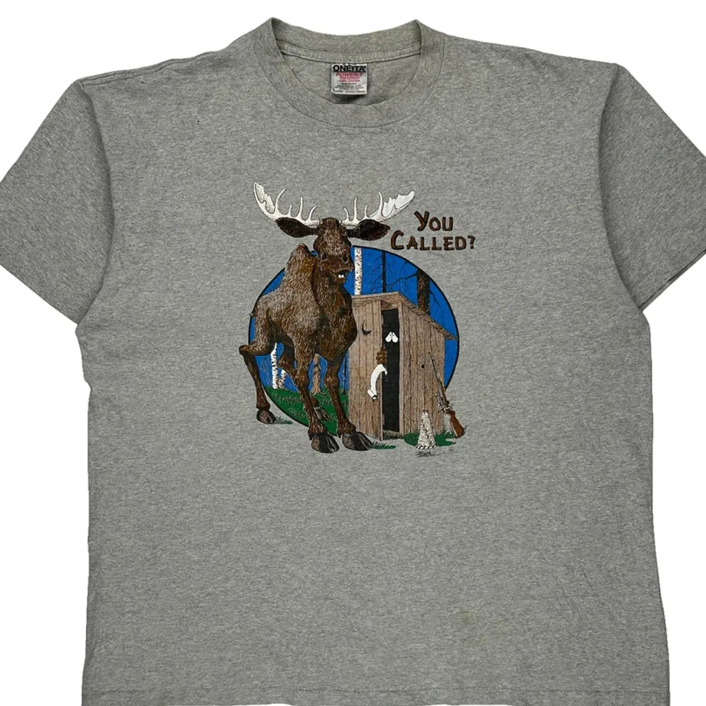 Moose Oneita Single Stitch T-Shirt - XL Grey Cotton