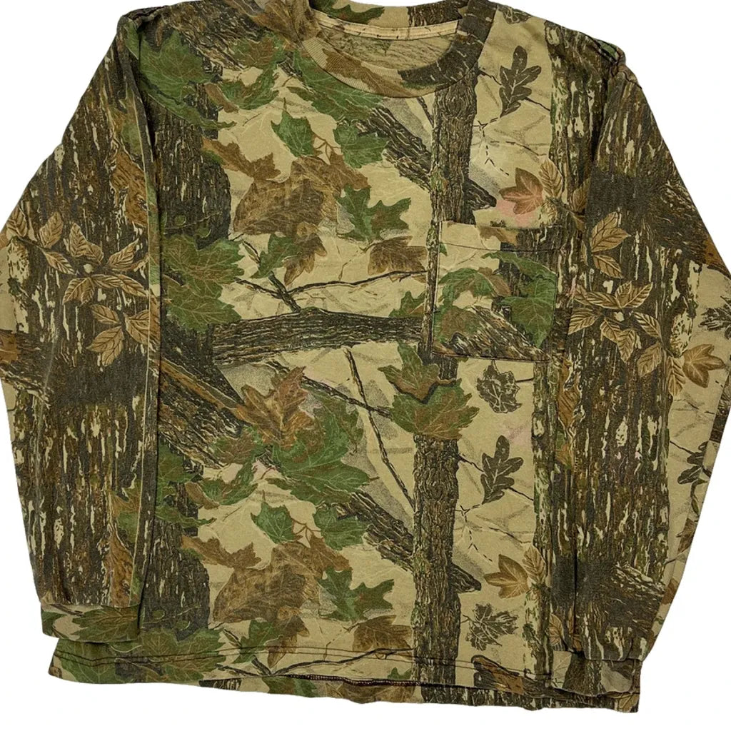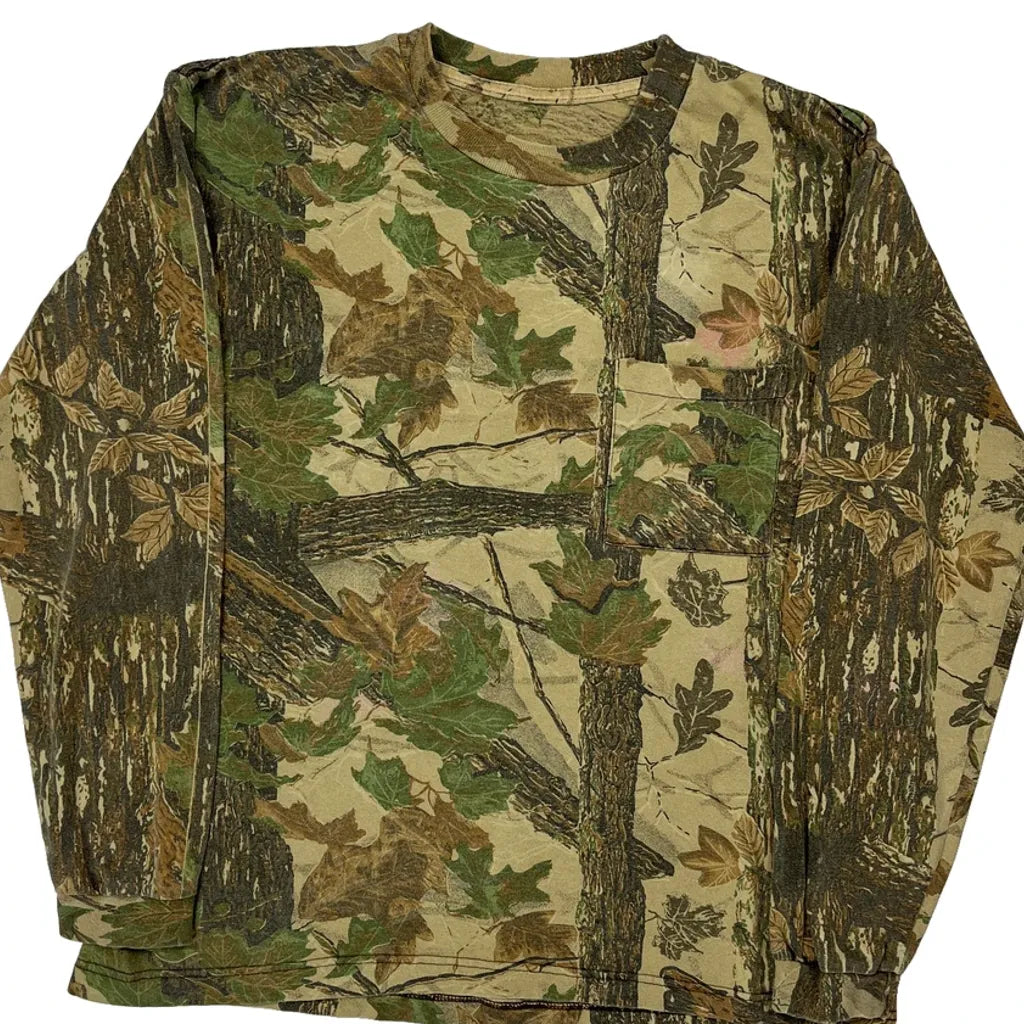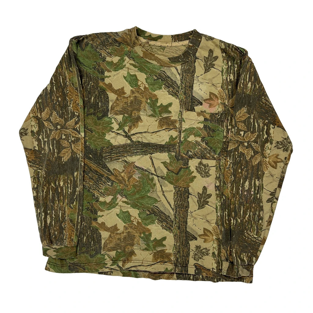 Mossy Oak Camo Long Sleeve T-Shirt - XL Green Cotton