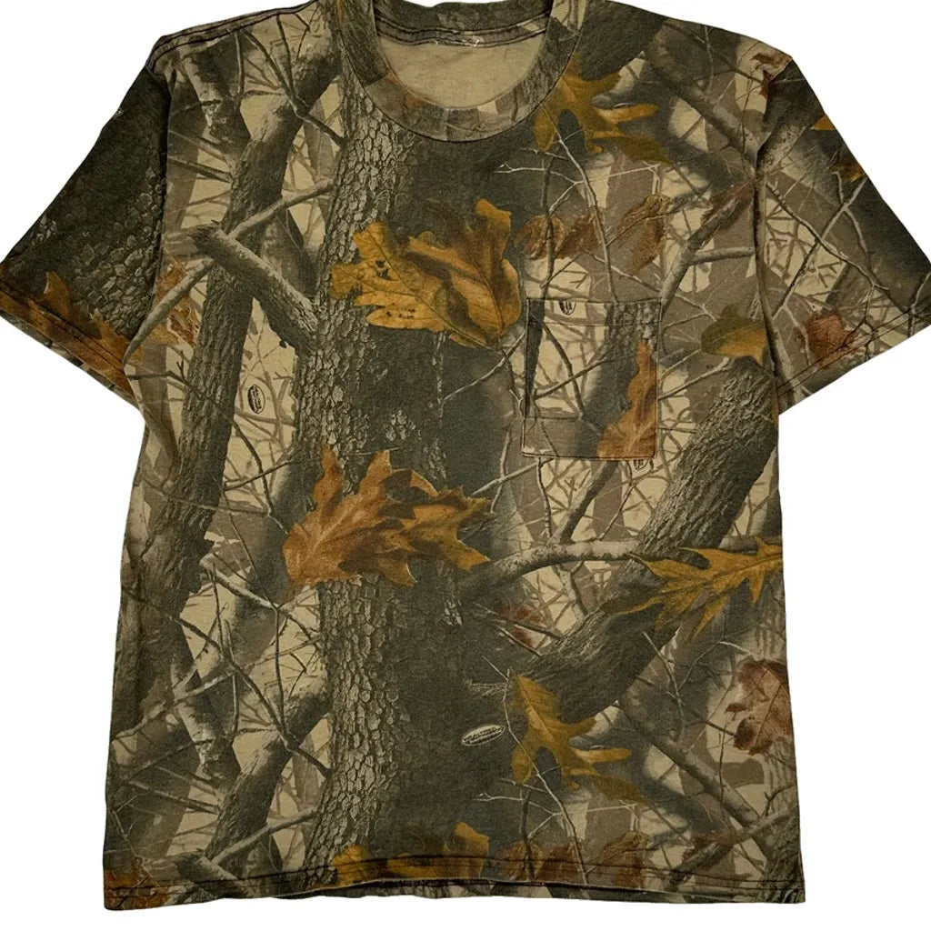 Mossy Oak Camo T-Shirt - Medium Khaki Cotton