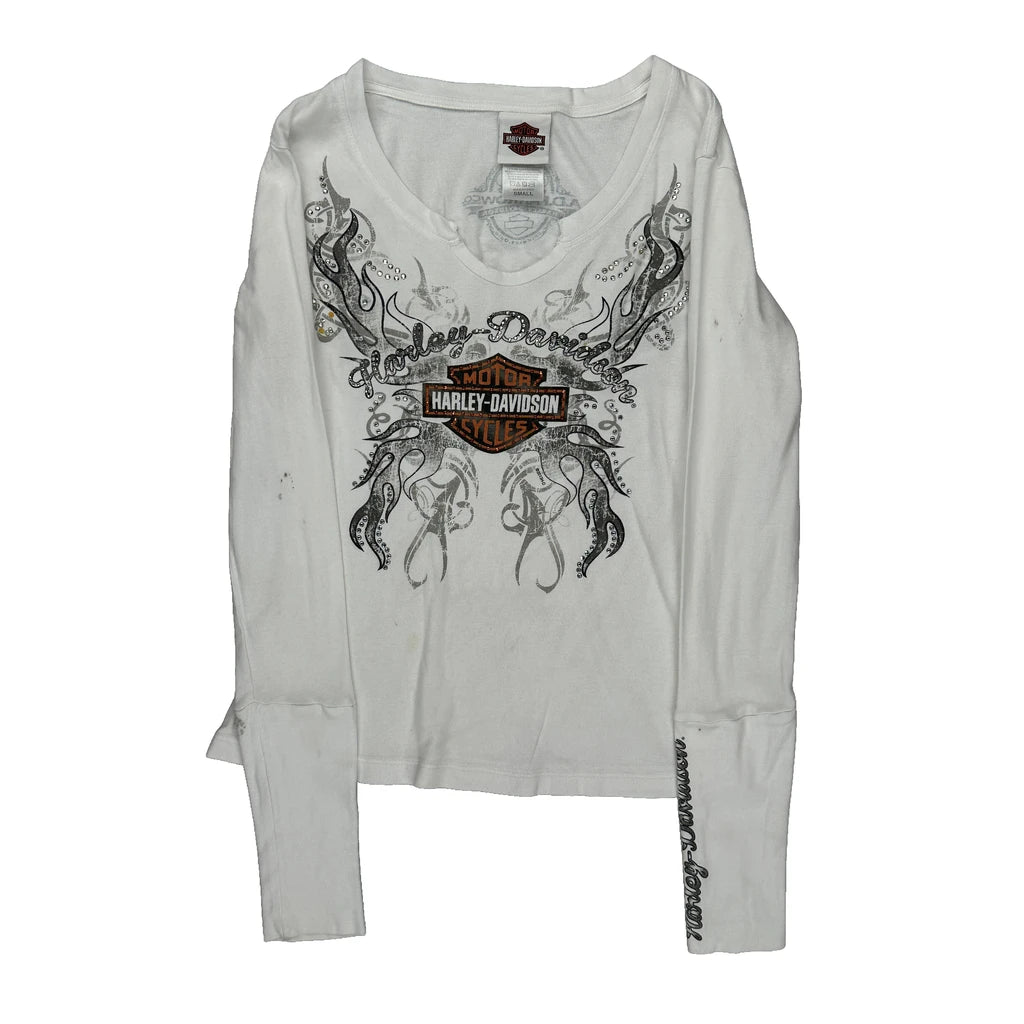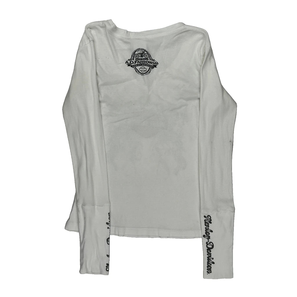 Motorcycles Harley Davidson Graphic Long Sleeve T-Shirt - Small White Cotton