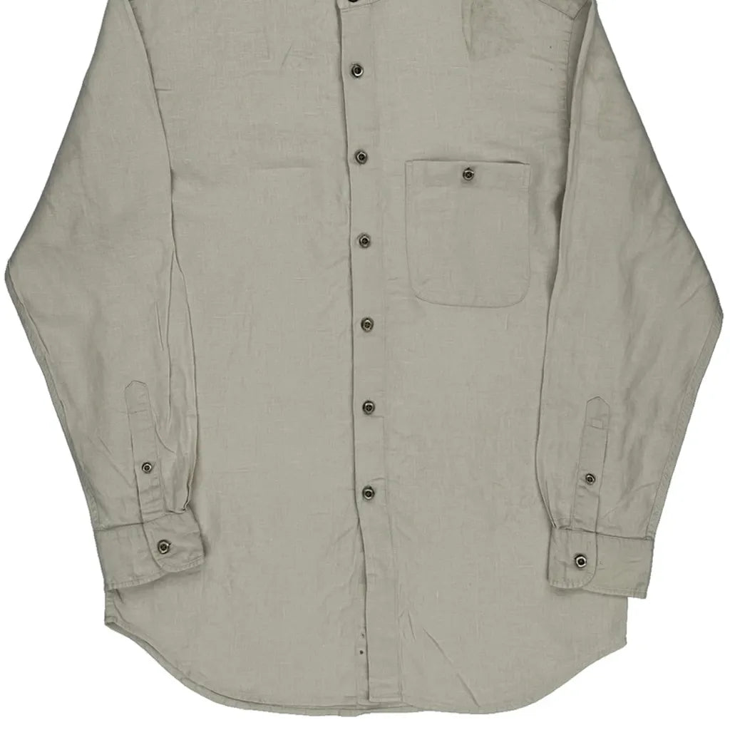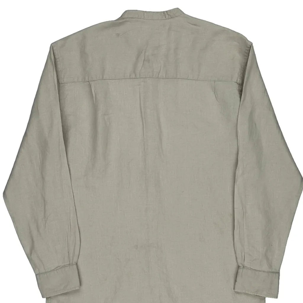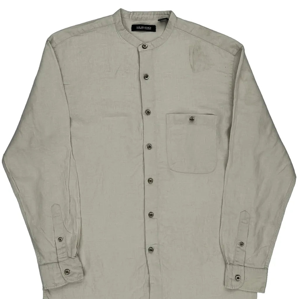 Murano Collarless Shirt - Small Cream Linen