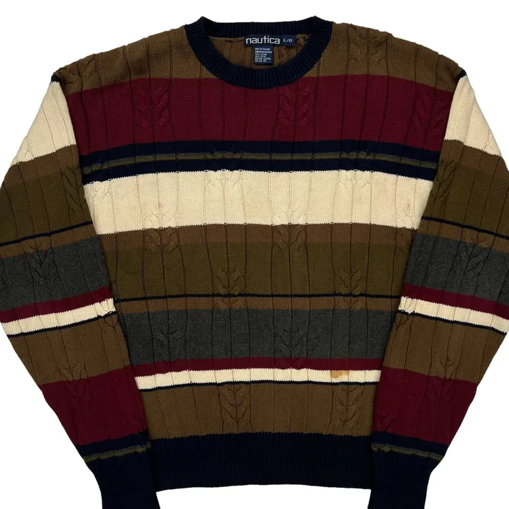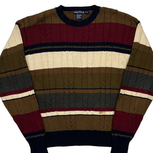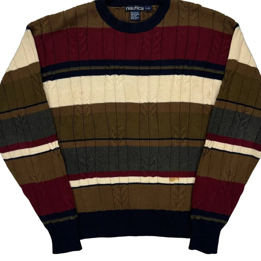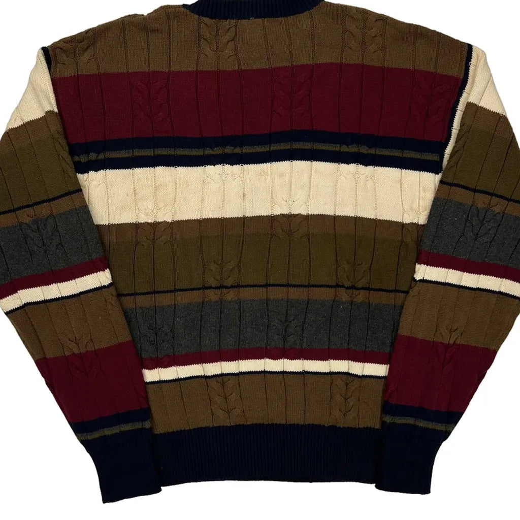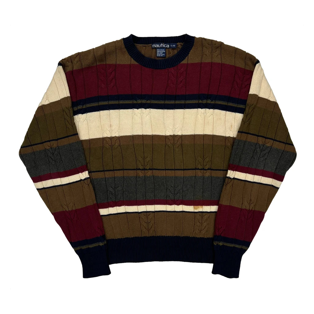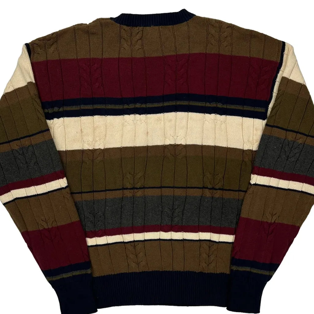 Nautica Striped Jumper - Large Burgundy Cotton