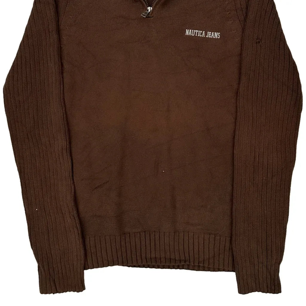 Nautica Long Sleeve T-Shirt - Large Brown Cotton