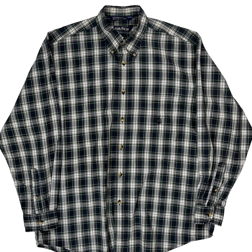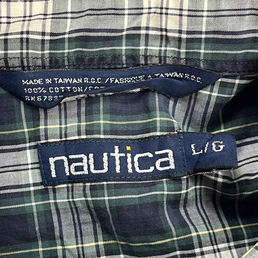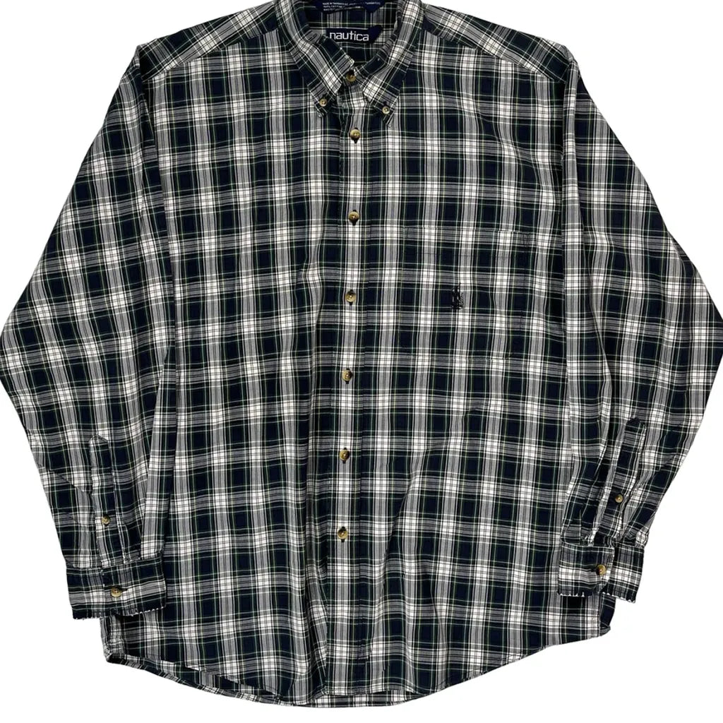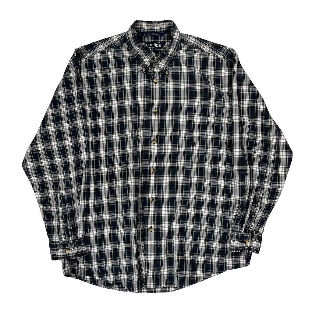 Nautica Checked Shirt - Large Green Cotton