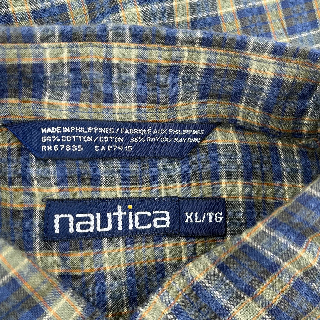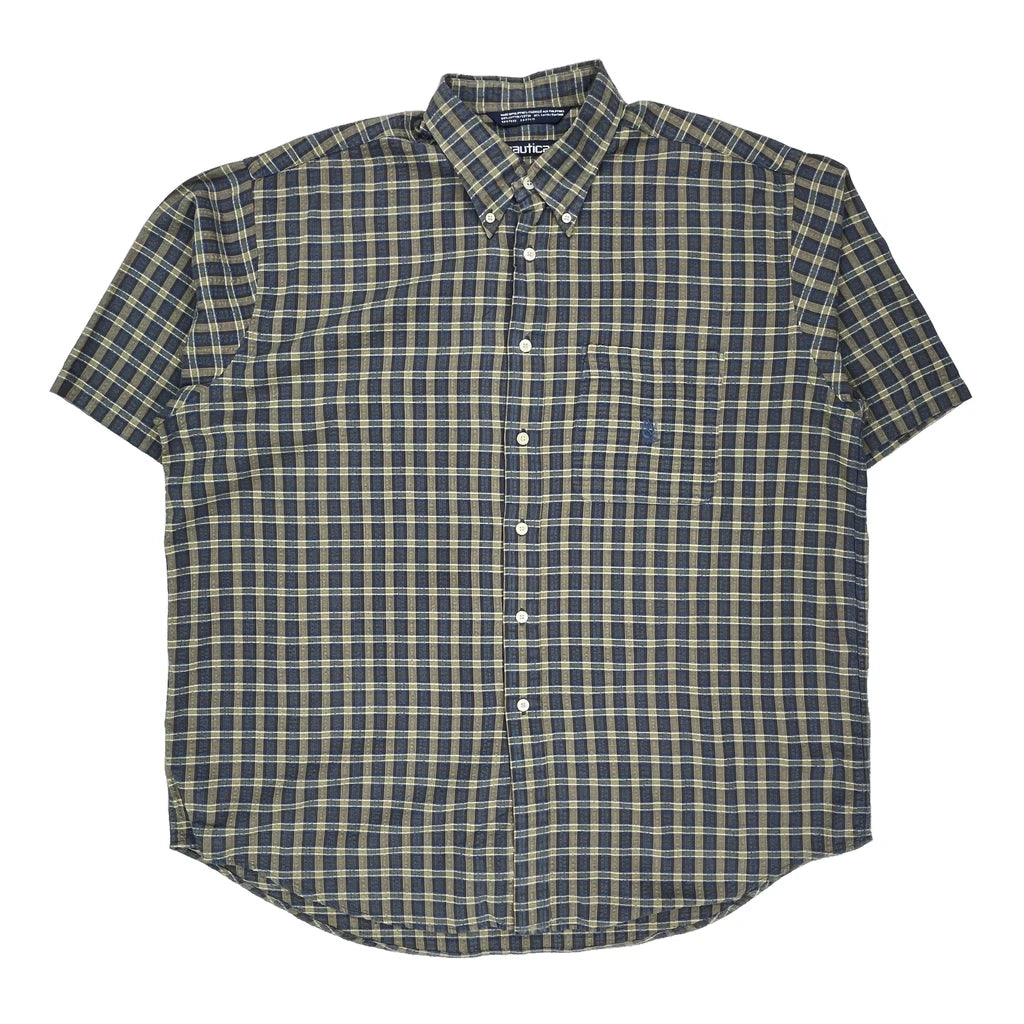 Nautica Short Sleeve Checked Shirt In Blue And Beige. Made In Philippines. Size Xl.