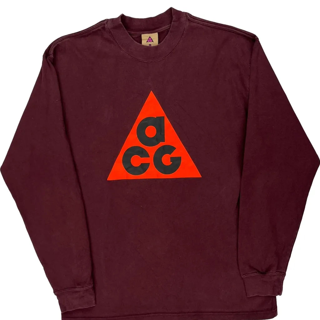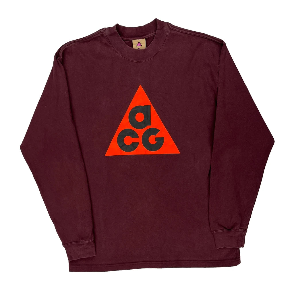 Nike Acg Long Sleeve T-Shirt - Medium Burgundy Cotton