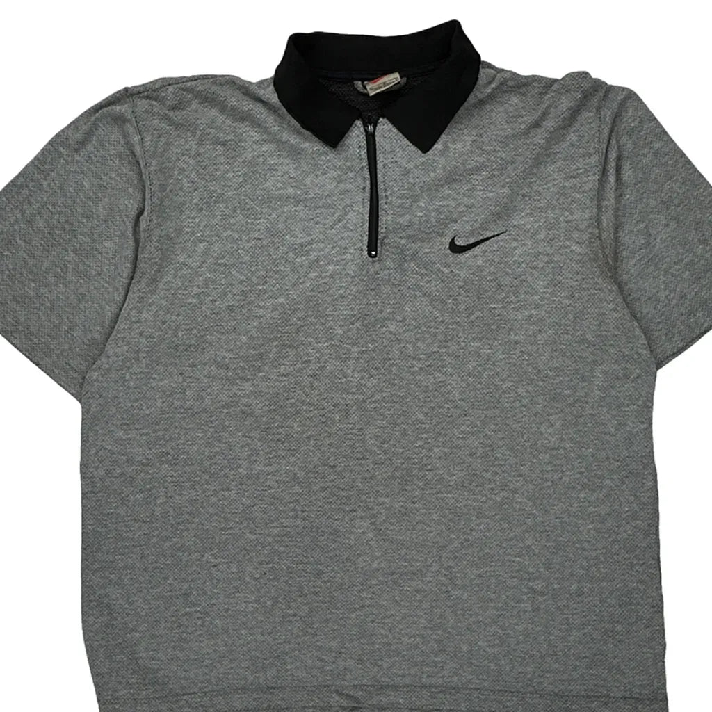 Grey Nike Polo Shirt With Black Collar, No Visible Marks Or Faults.