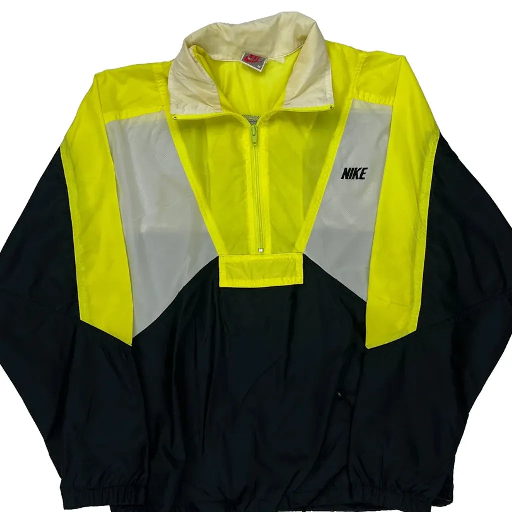 Vintage Nike Windbreaker With Yellow, Black, And White Color Blocks.