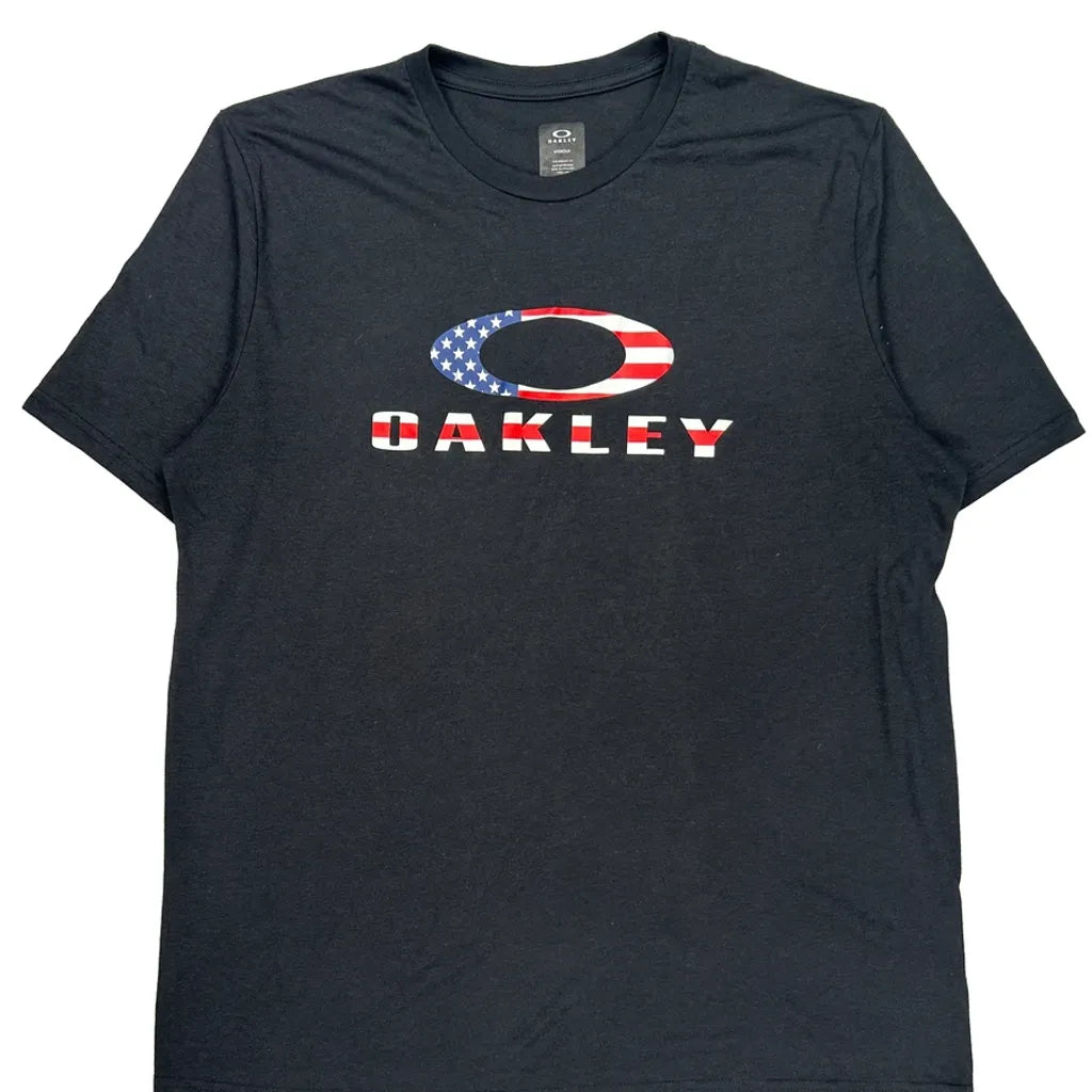 Black Oakley T-Shirt With American Flag Logo