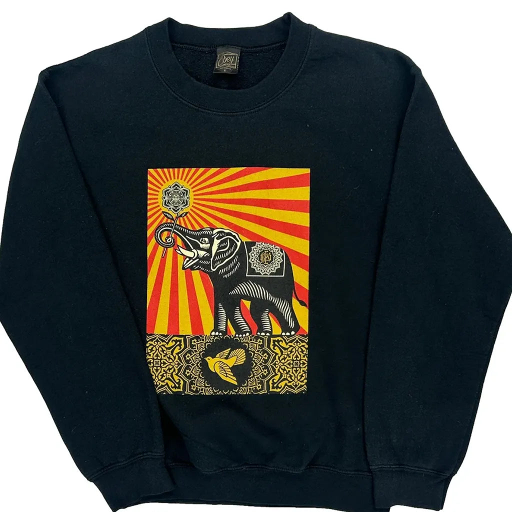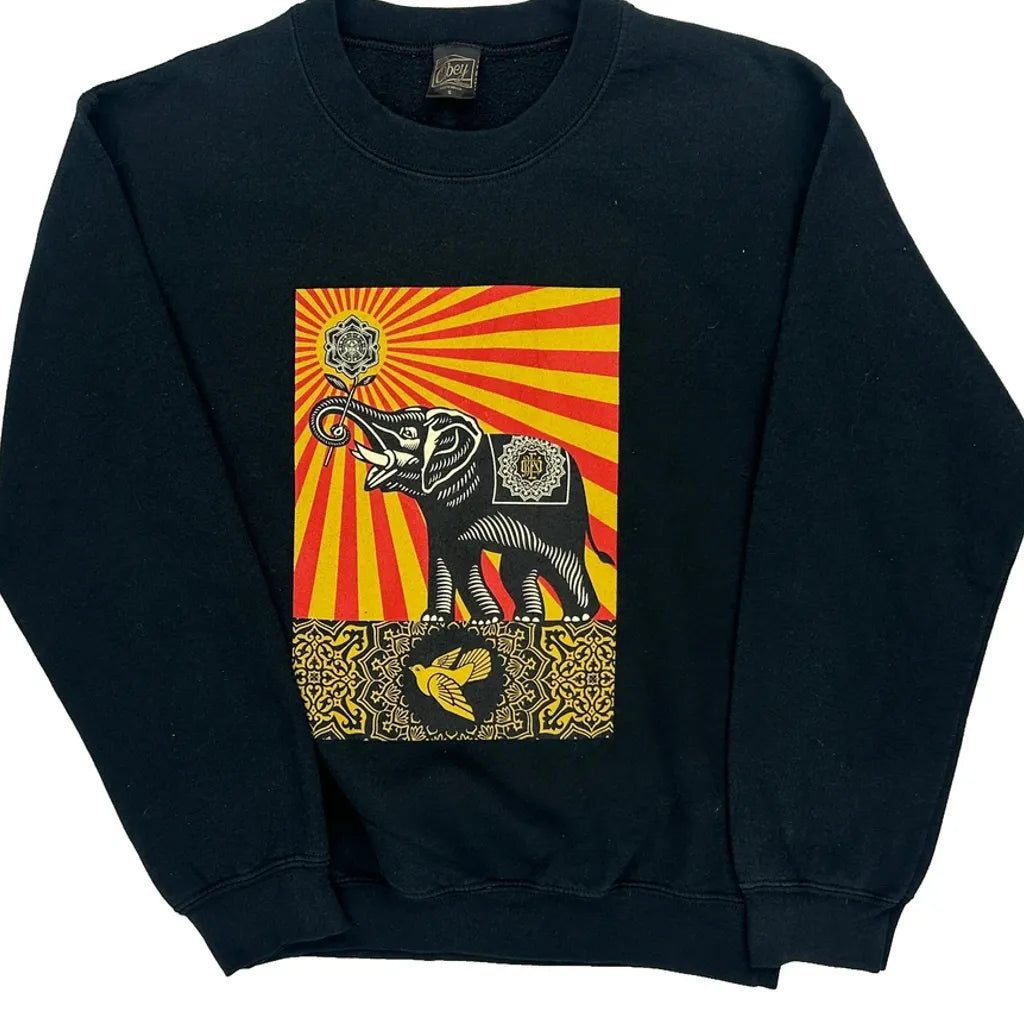 Obey Graphic Sweatshirt - Small Black Cotton