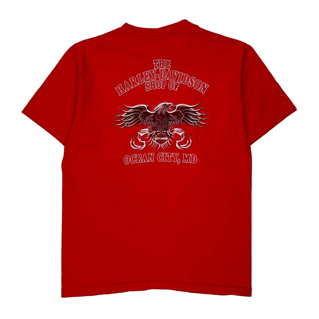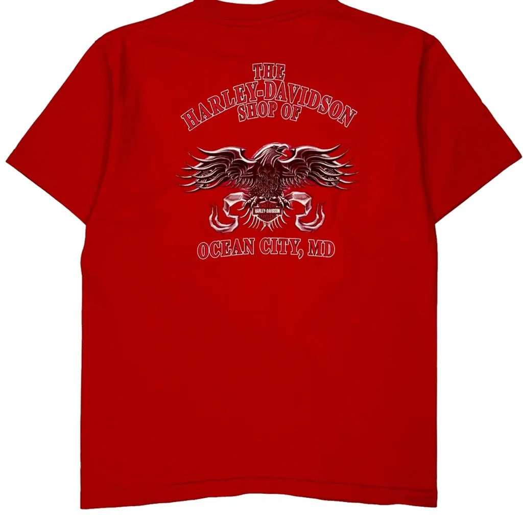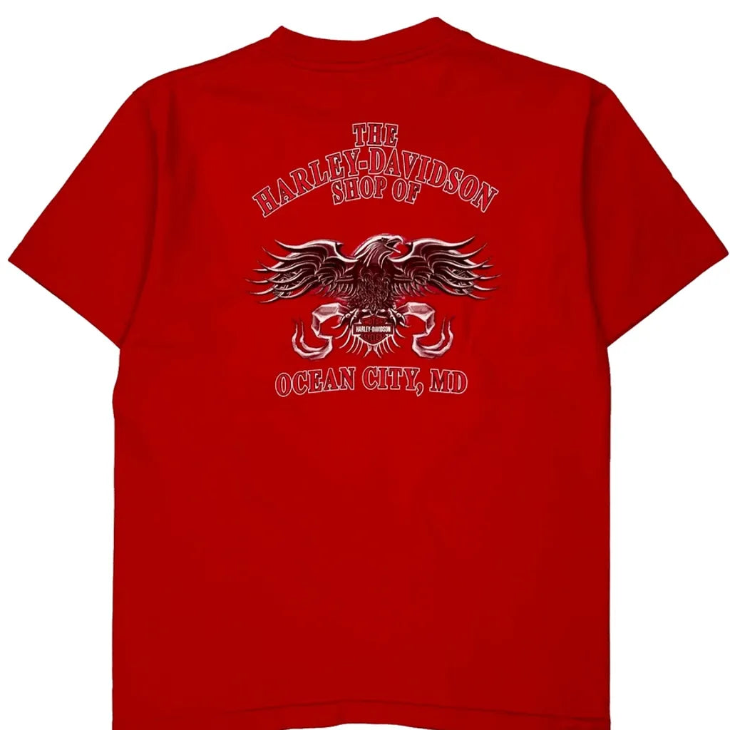 Ocean City, Md Harley Davidson Graphic T-Shirt - Large Red Cotton
