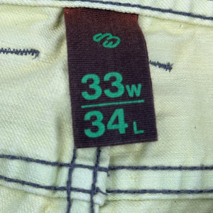One Green Elephant Jeans, fit a 33″ Waist and 34″ inseam.