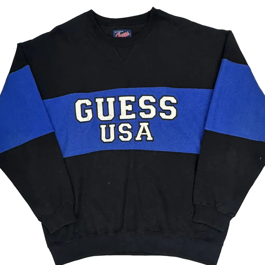 Original And Authentic Guess Spellout Sweatshirt - Large Black Cotton