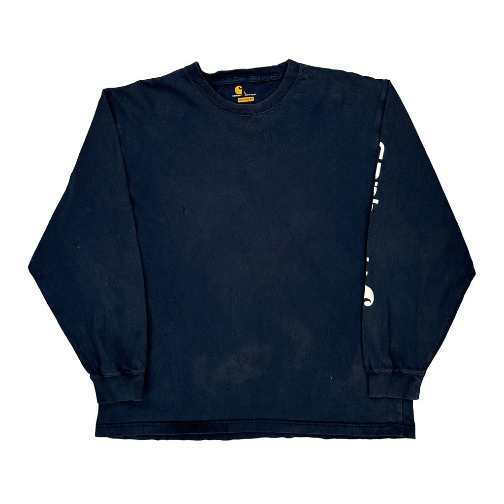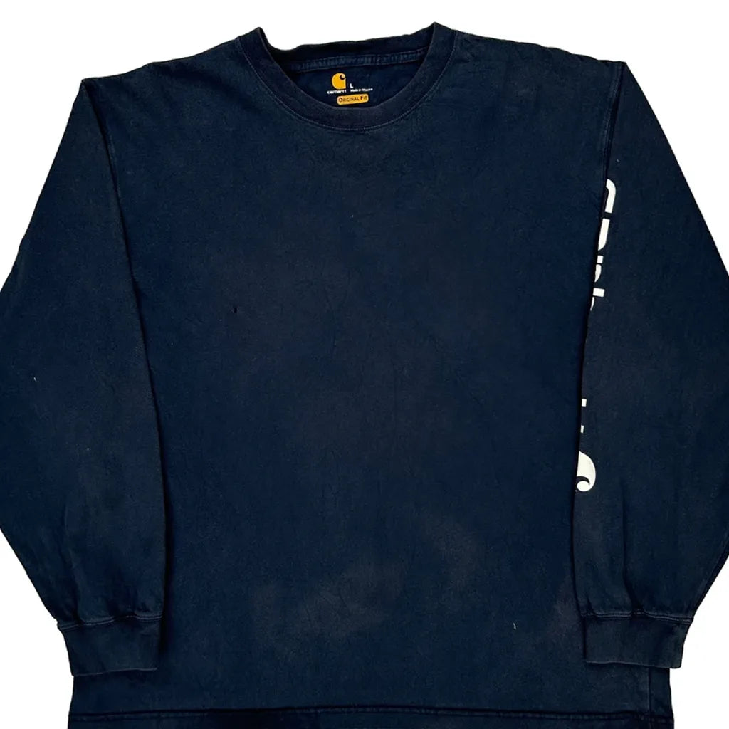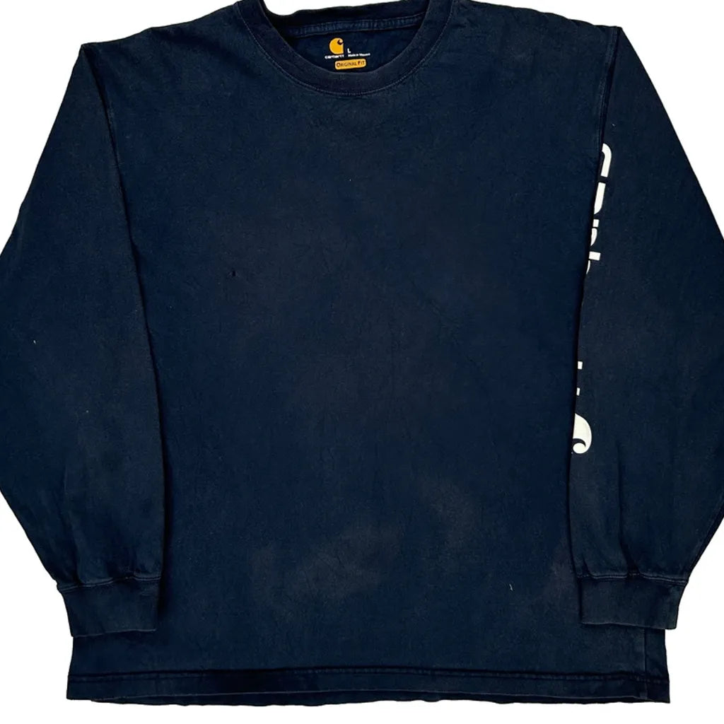 Original Fit Carhartt Spellout Long Sleeve T-Shirt - Large Navy Cotton