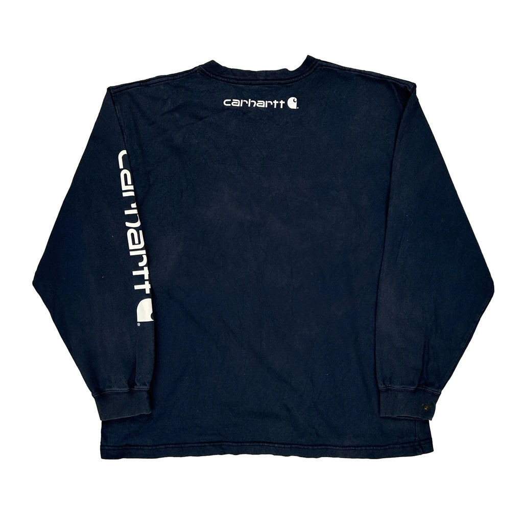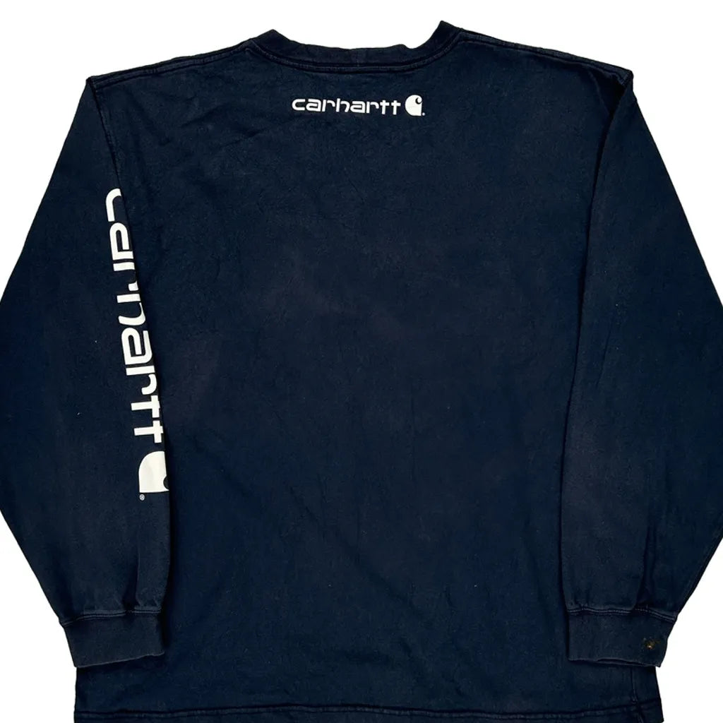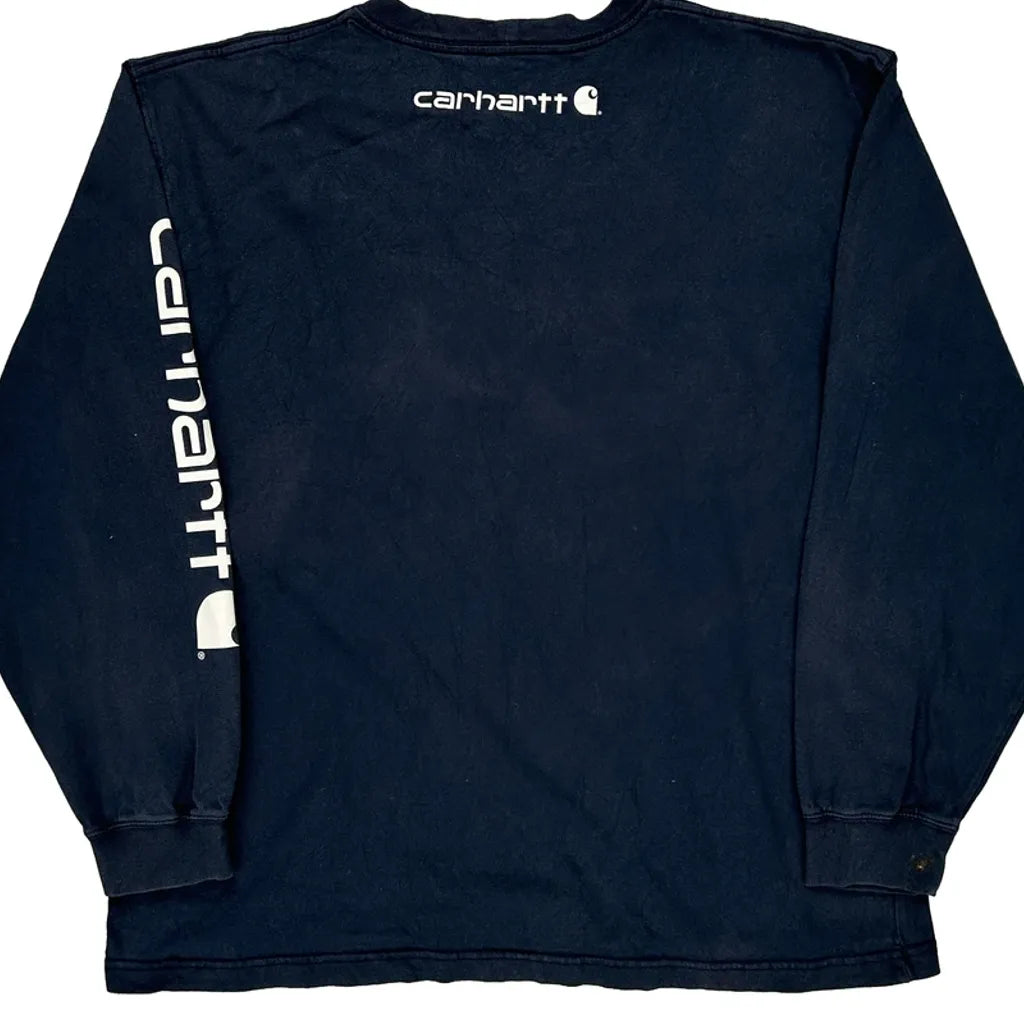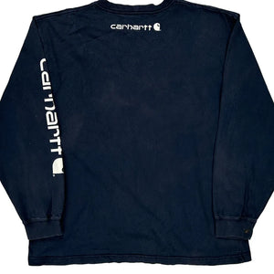 Original Fit Carhartt Spellout Long Sleeve T-Shirt - Large Navy Cotton