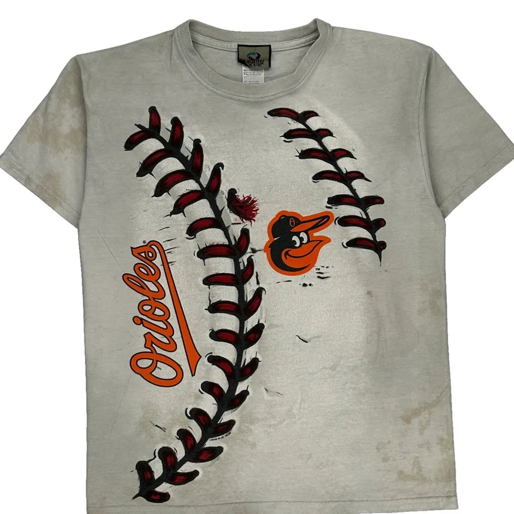 Orioles Youth Liquid Blue Graphic T-Shirt - Large White Cotton