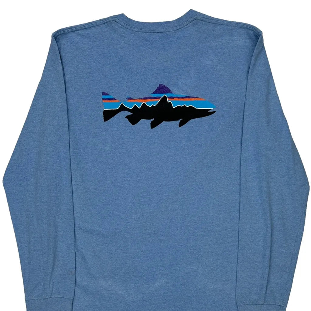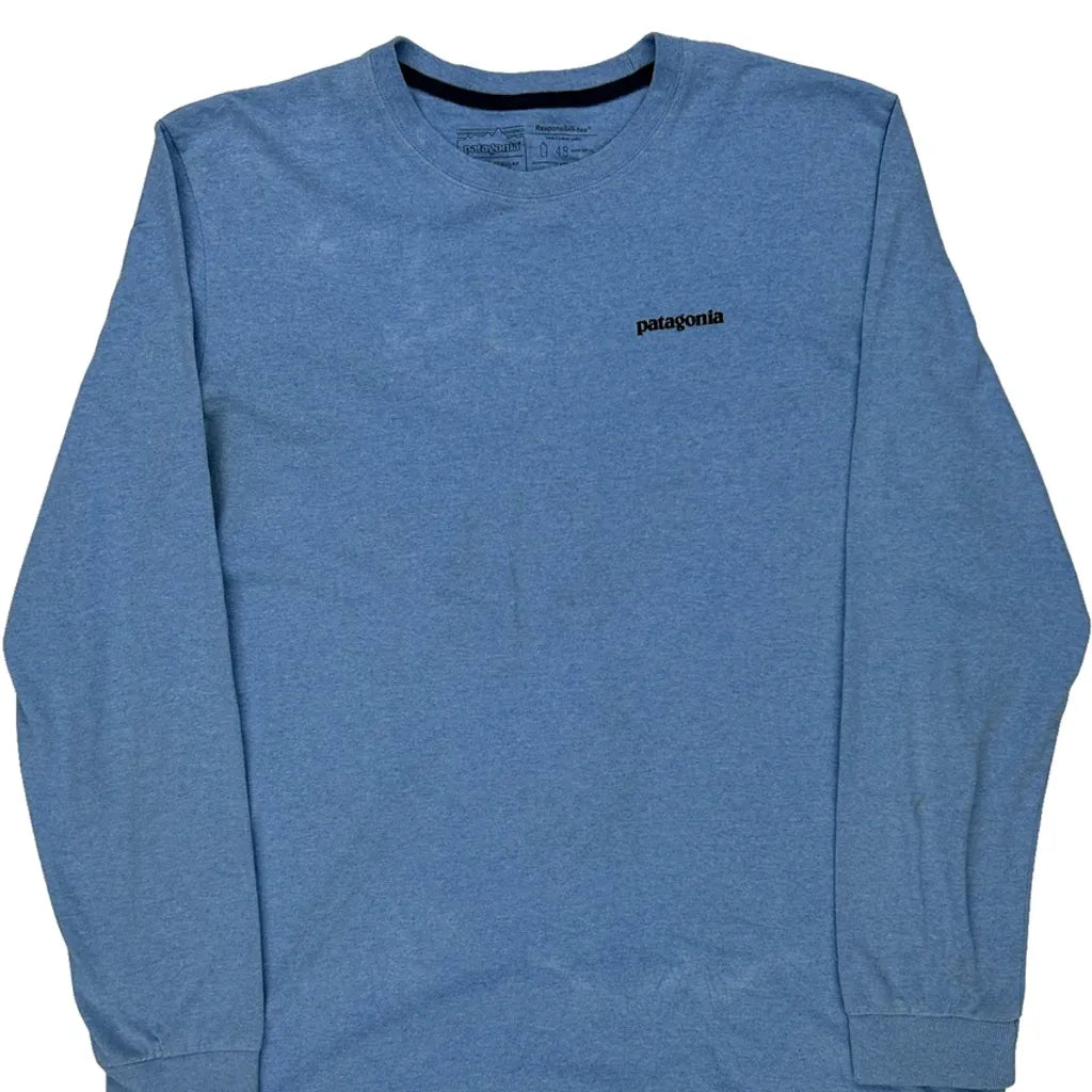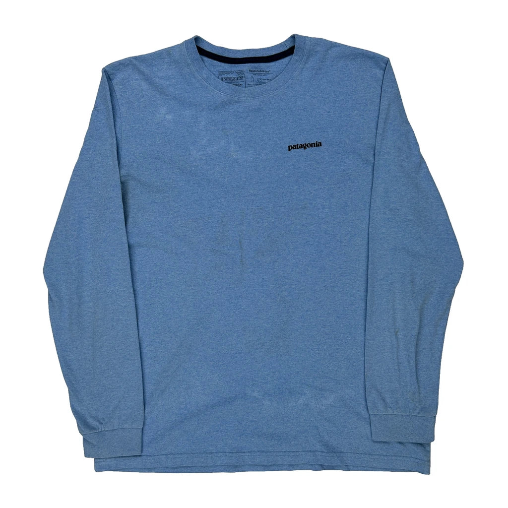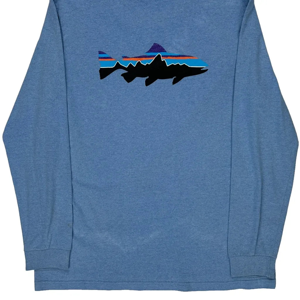 Patagonia Graphic Long Sleeve T-Shirt - Large Blue Cotton Blend