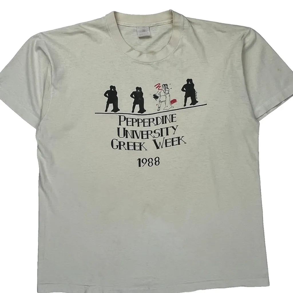 Pepperdine University Greek Week 1988 Fruit Of The Loom T-Shirt, fits X-Large.