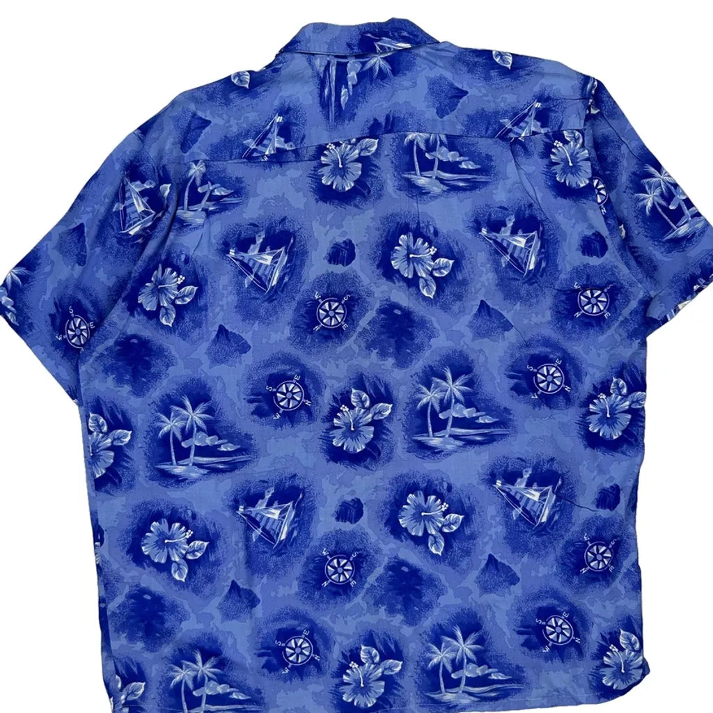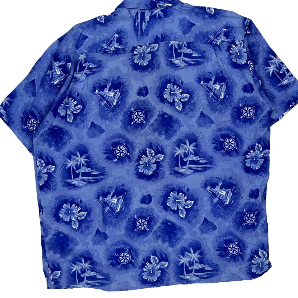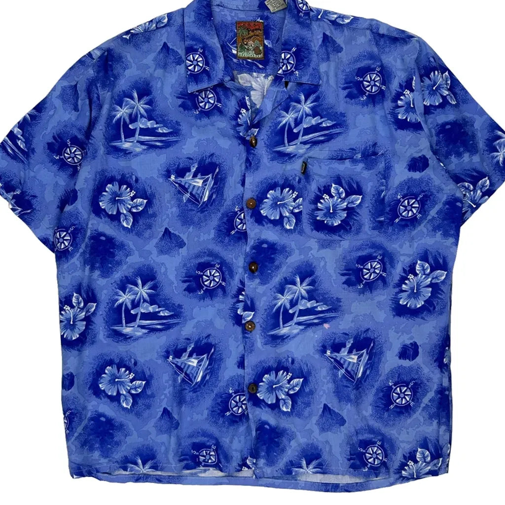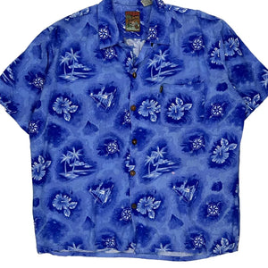 Pineapple Connection Floral Hawaiian Shirt - Large Blue Viscose