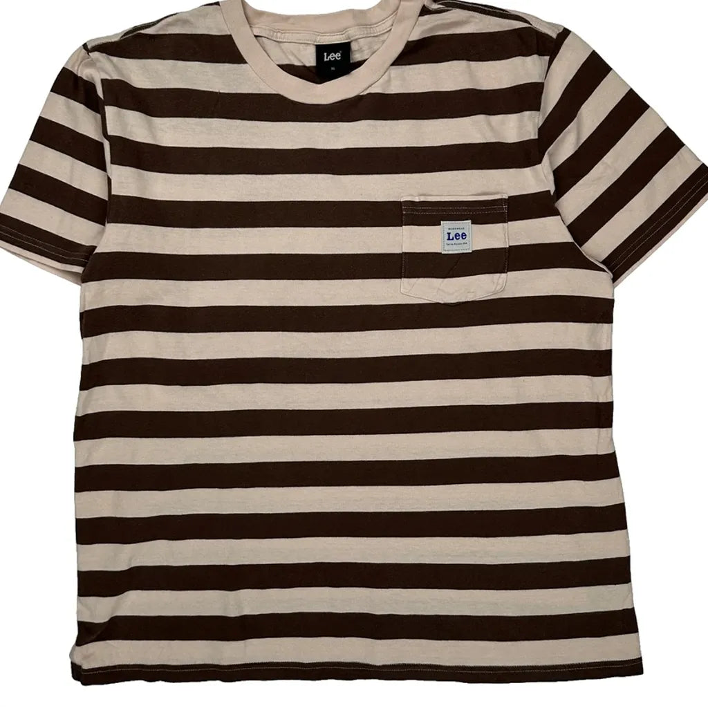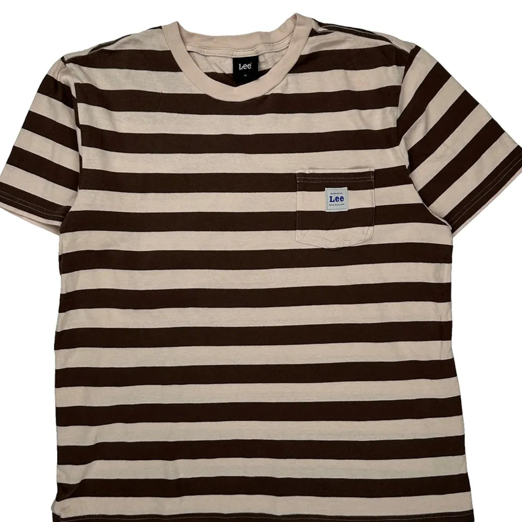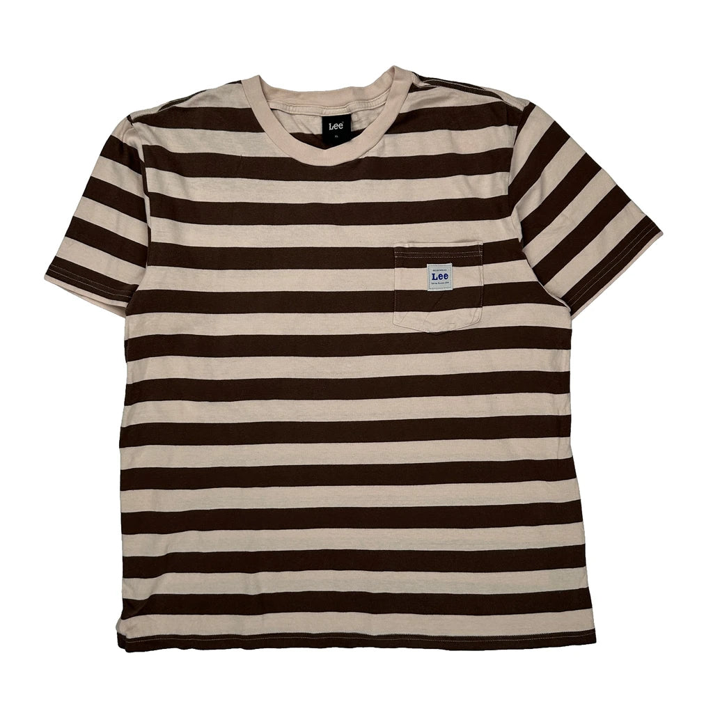 Pocket On Chest Lee Striped T-Shirt - XL Brown Cotton