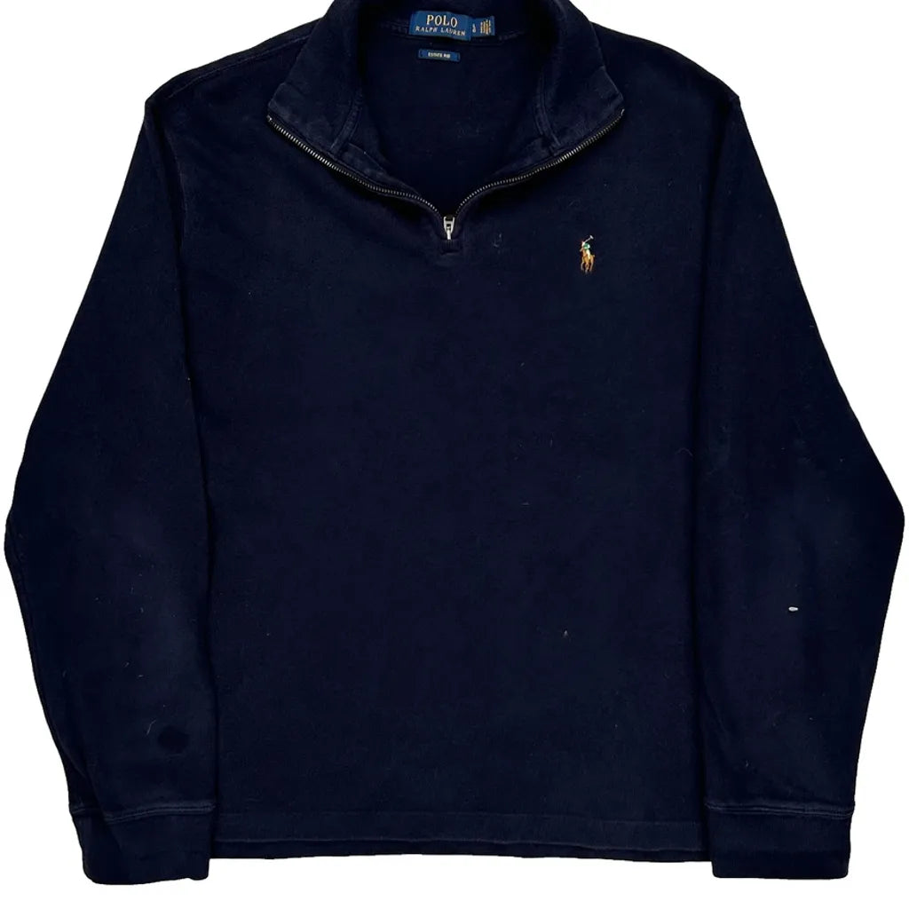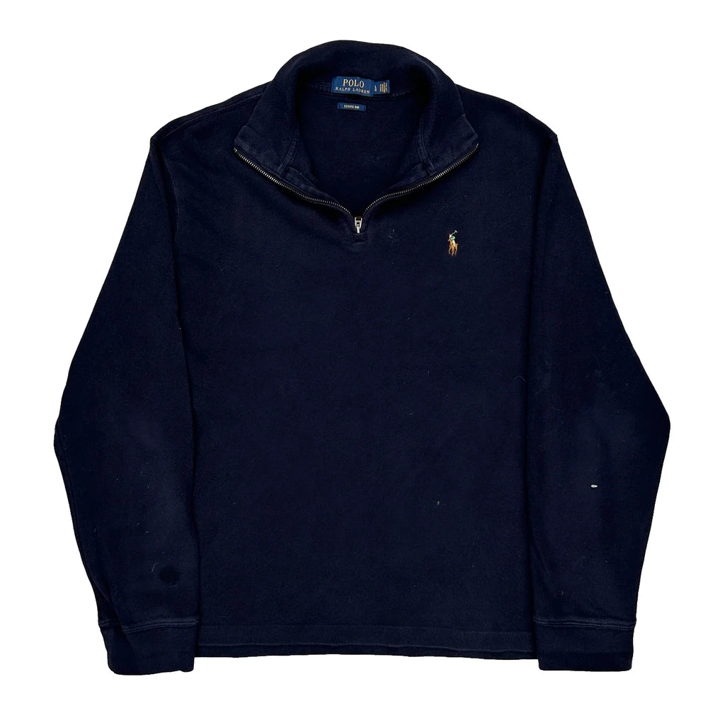 Polo By Ralph Lauren 1/4 Zip - Large Navy Cotton
