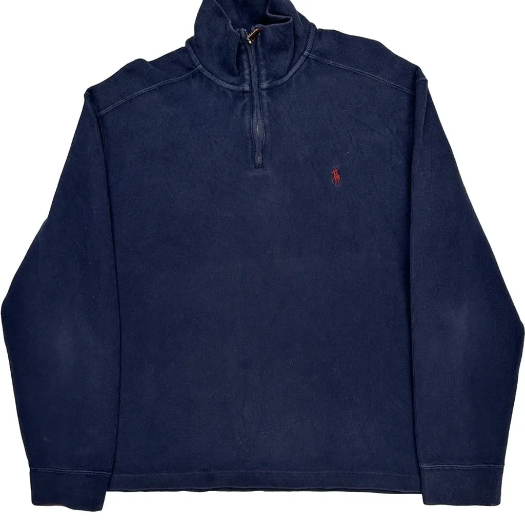 Polo By Ralph Lauren 1/4 Zip - Large Navy Cotton