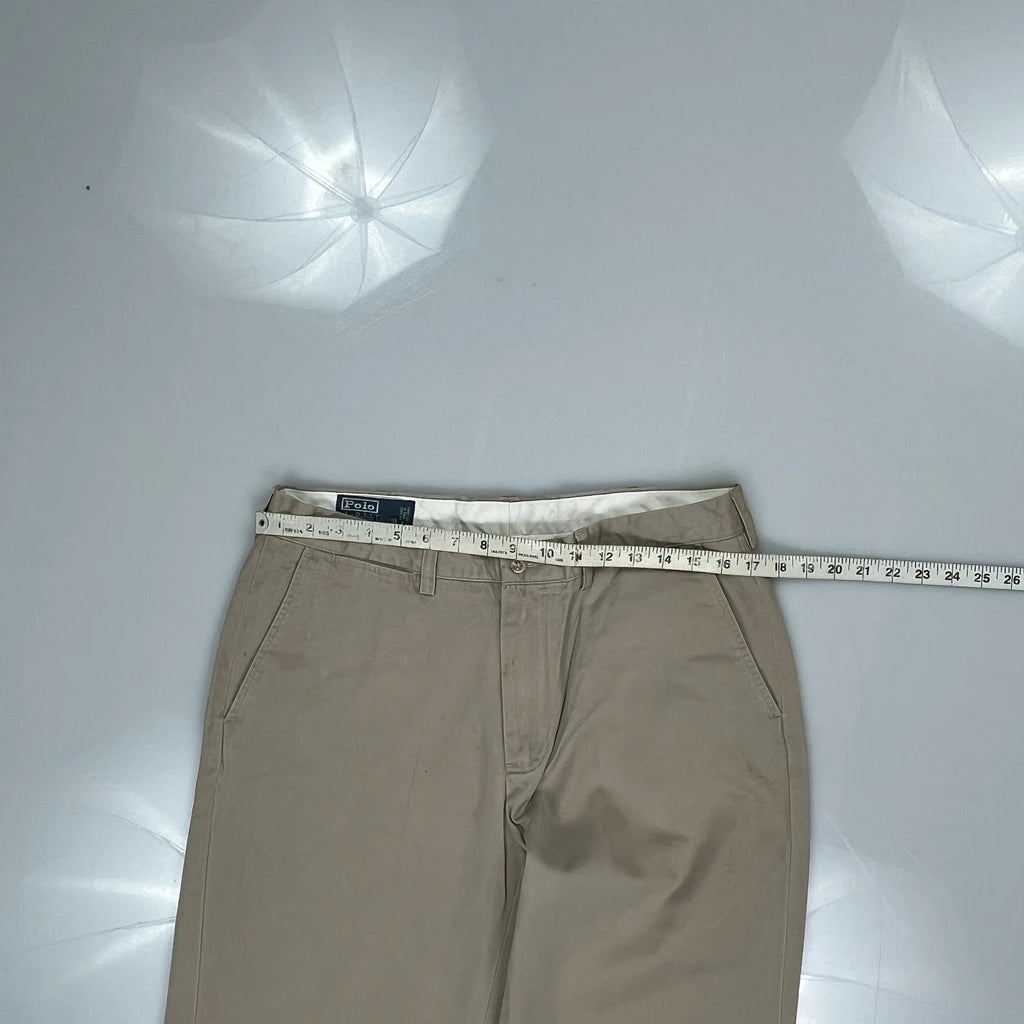 Polo By Ralph Lauren Chinos, fit a 34″ Waist and 30″ inseam.