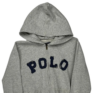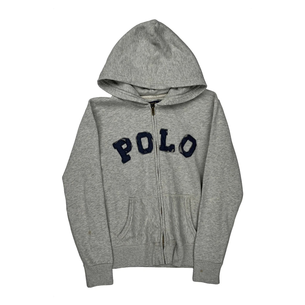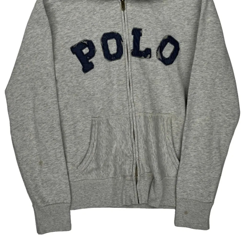 Grey Hoodie With Blue 'Polo' Text, Minor Marks On Sleeves