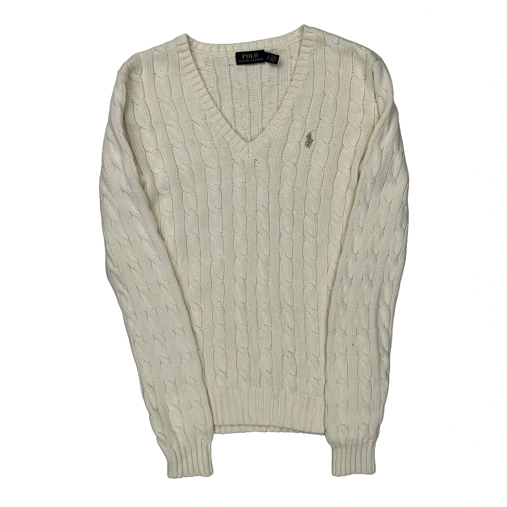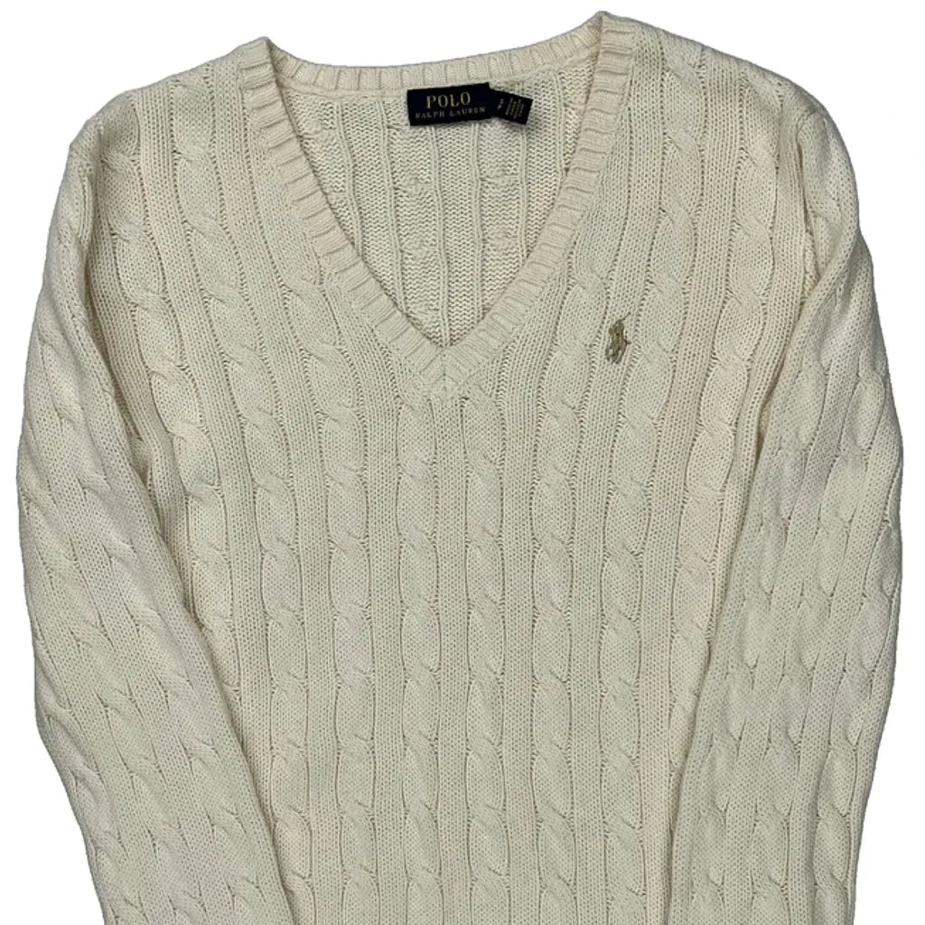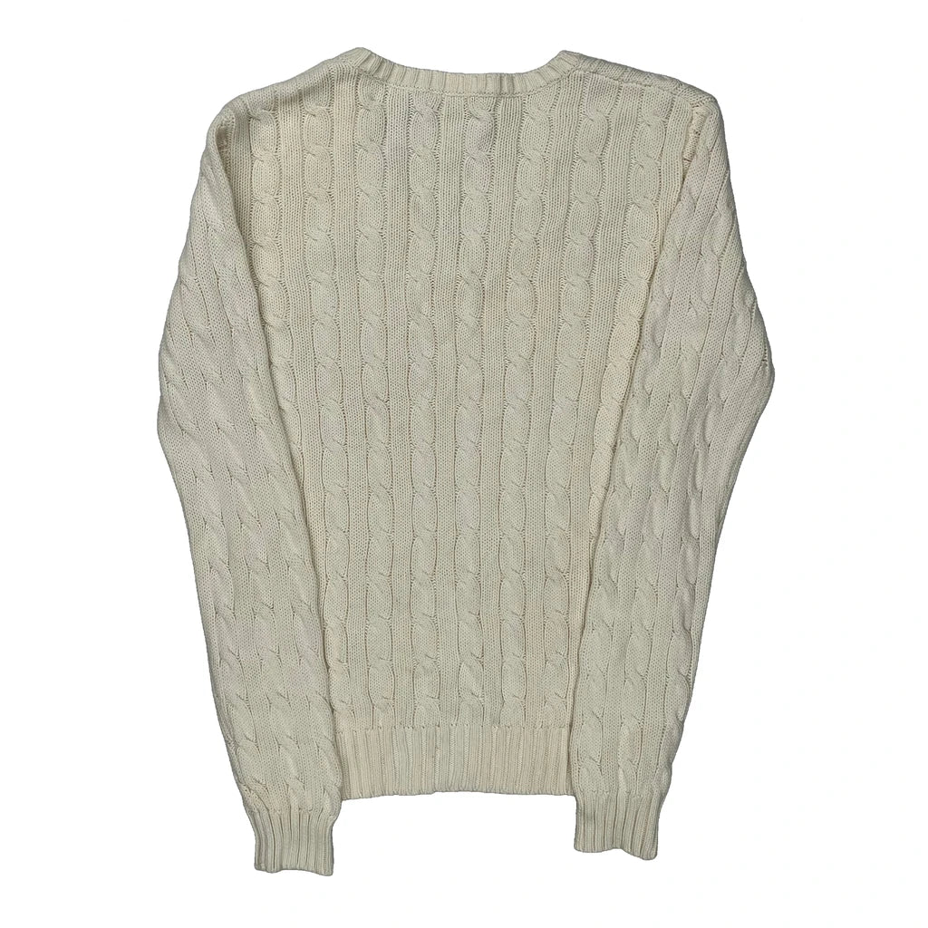 Polo By Ralph Lauren V-Neck Jumper - Small Cream Cotton