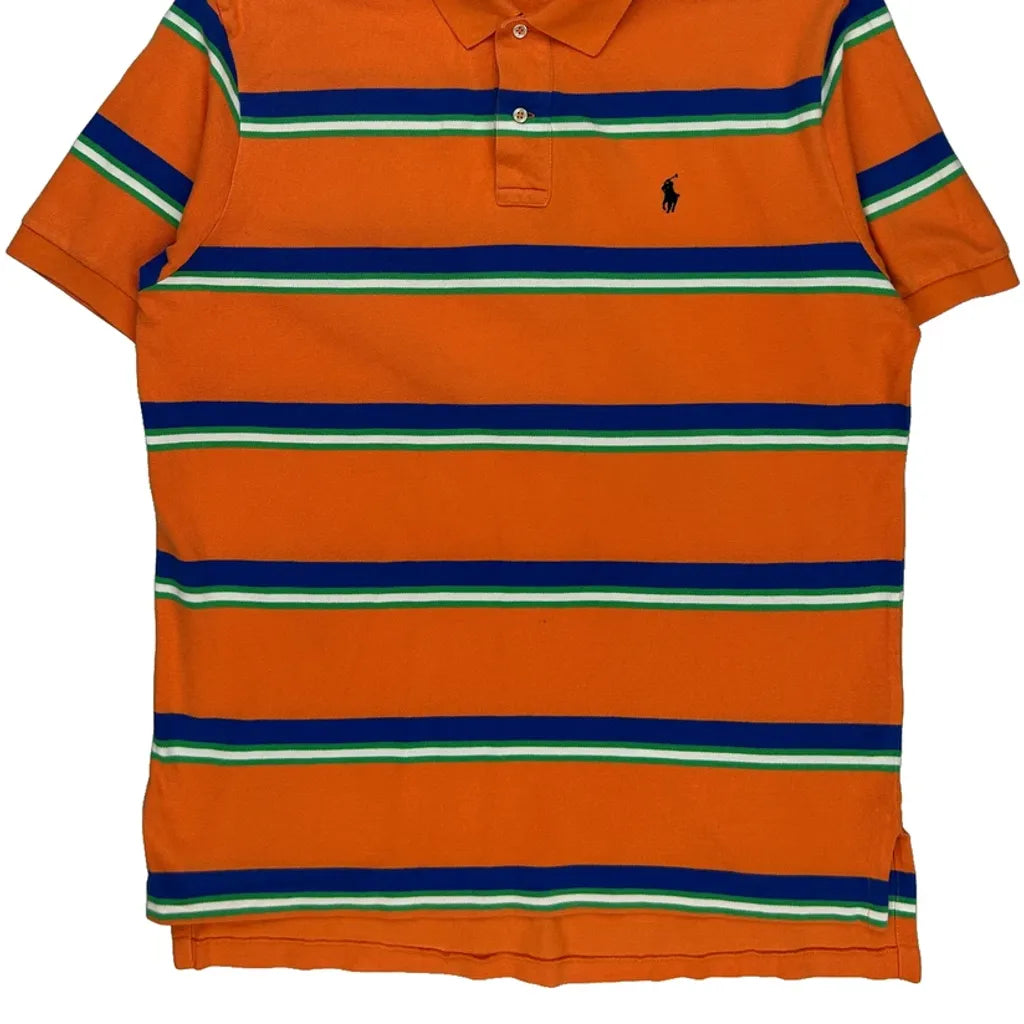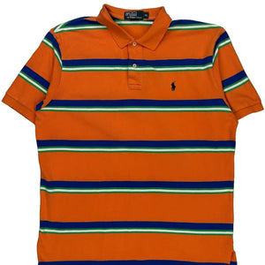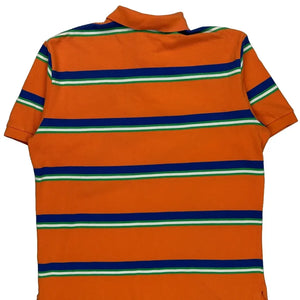 Orange Polo Shirt With Blue And Green Stripes