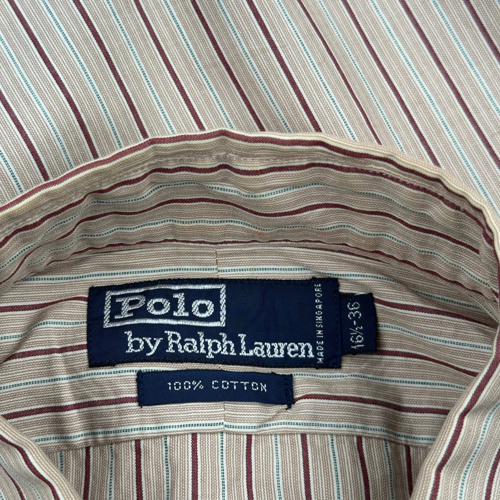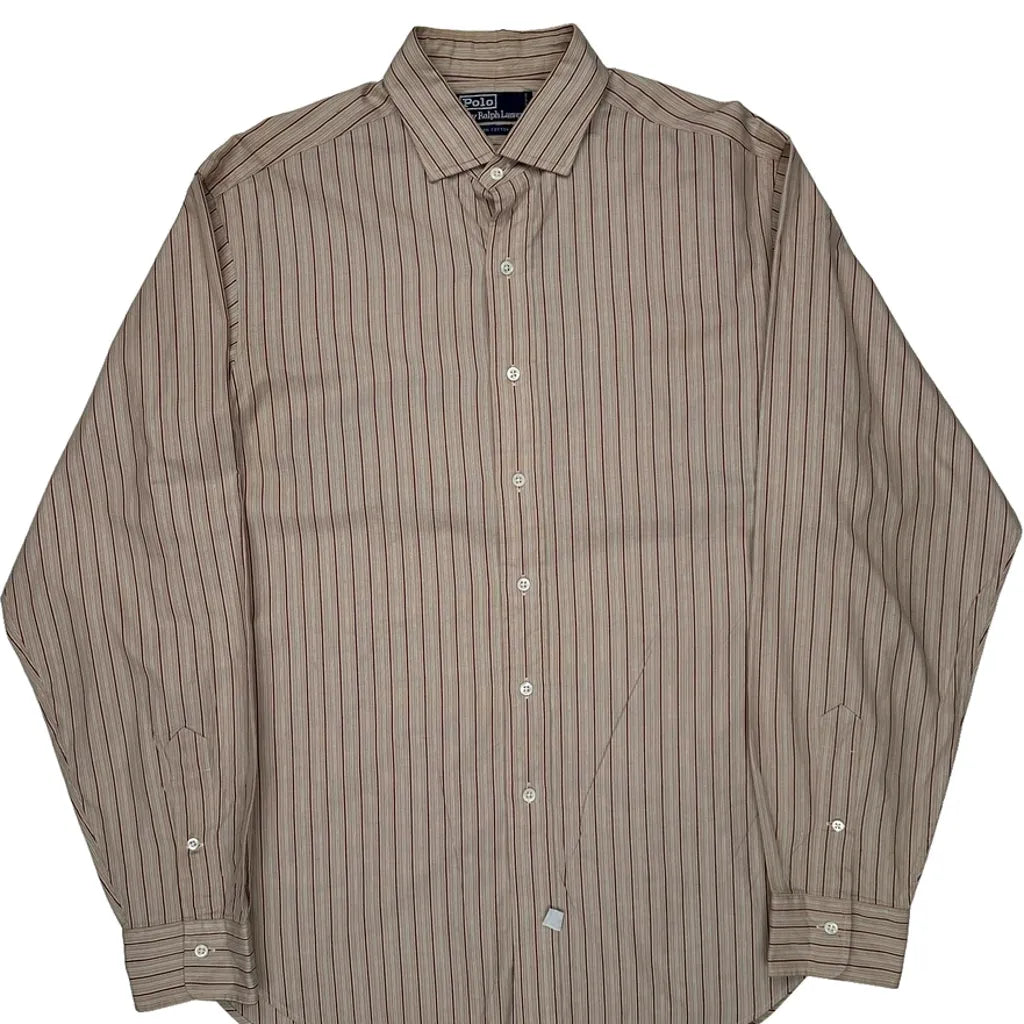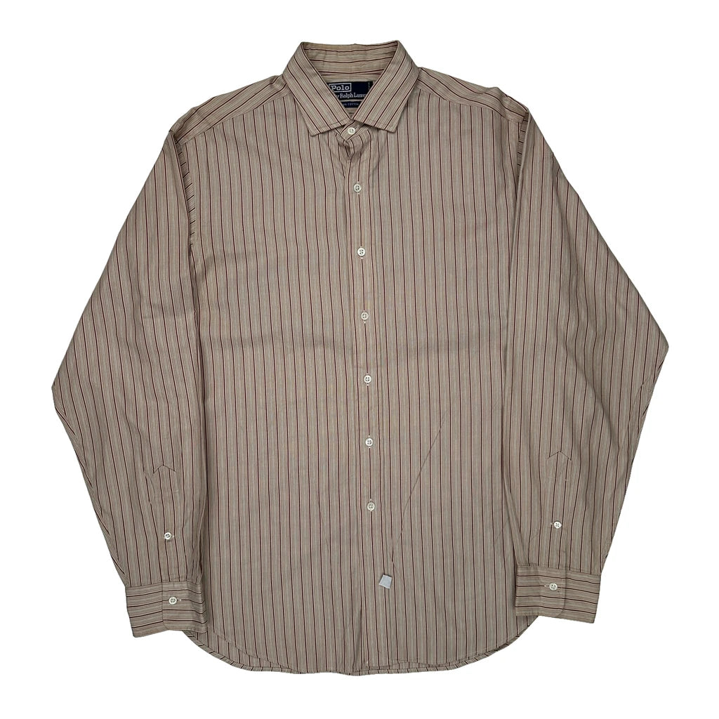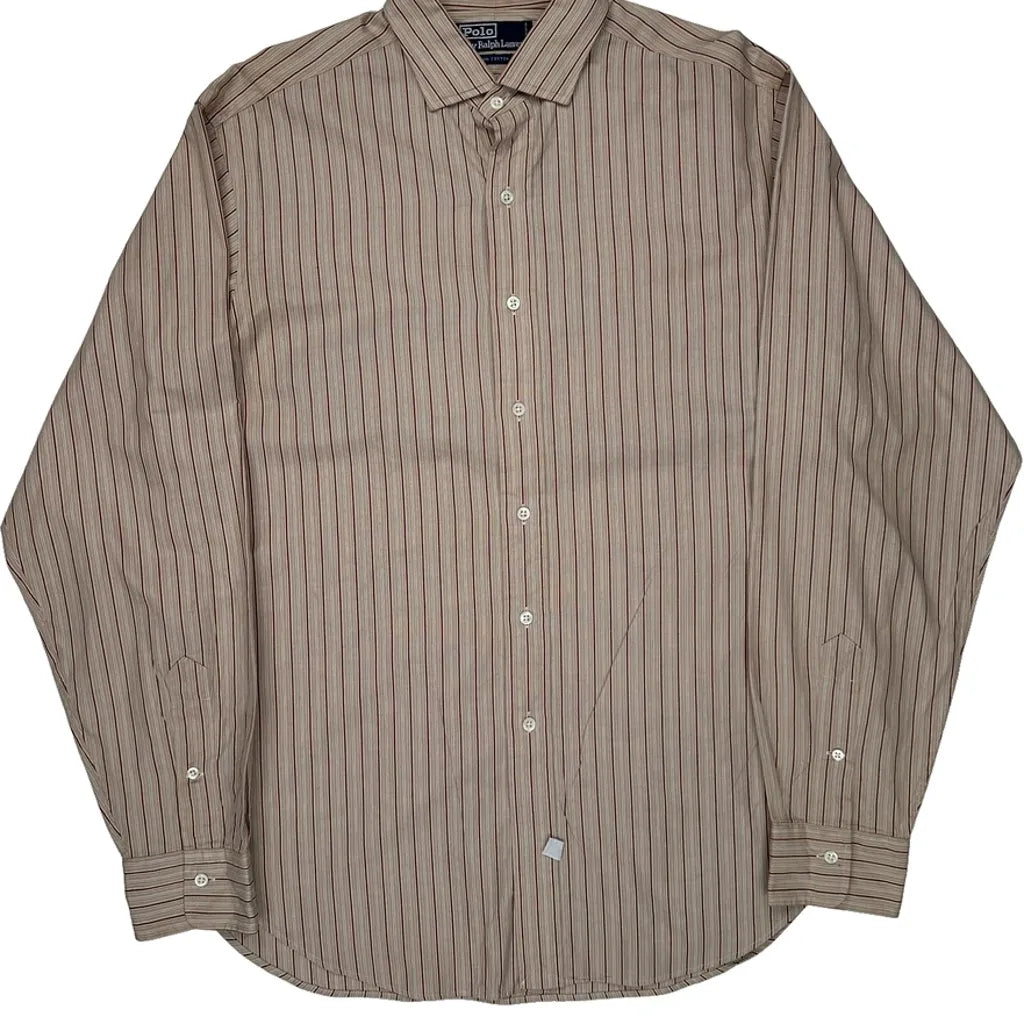 Polo By Ralph Lauren Striped Shirt - Large Beige Cotton