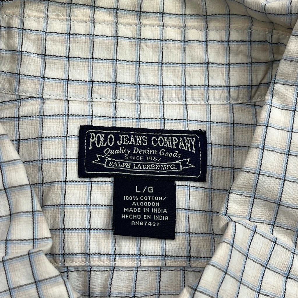 Polo By Ralph Lauren Checked Short Sleeve Shirt - Large White Cotton