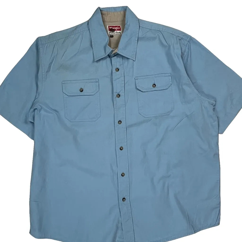 Premium Quality Wrangler Short Sleeve Shirt - XL Blue Cotton