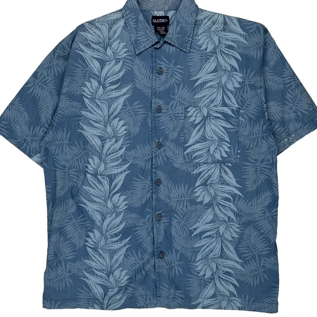 Puritan Floral Hawaiian Shirt - Large Blue Cotton